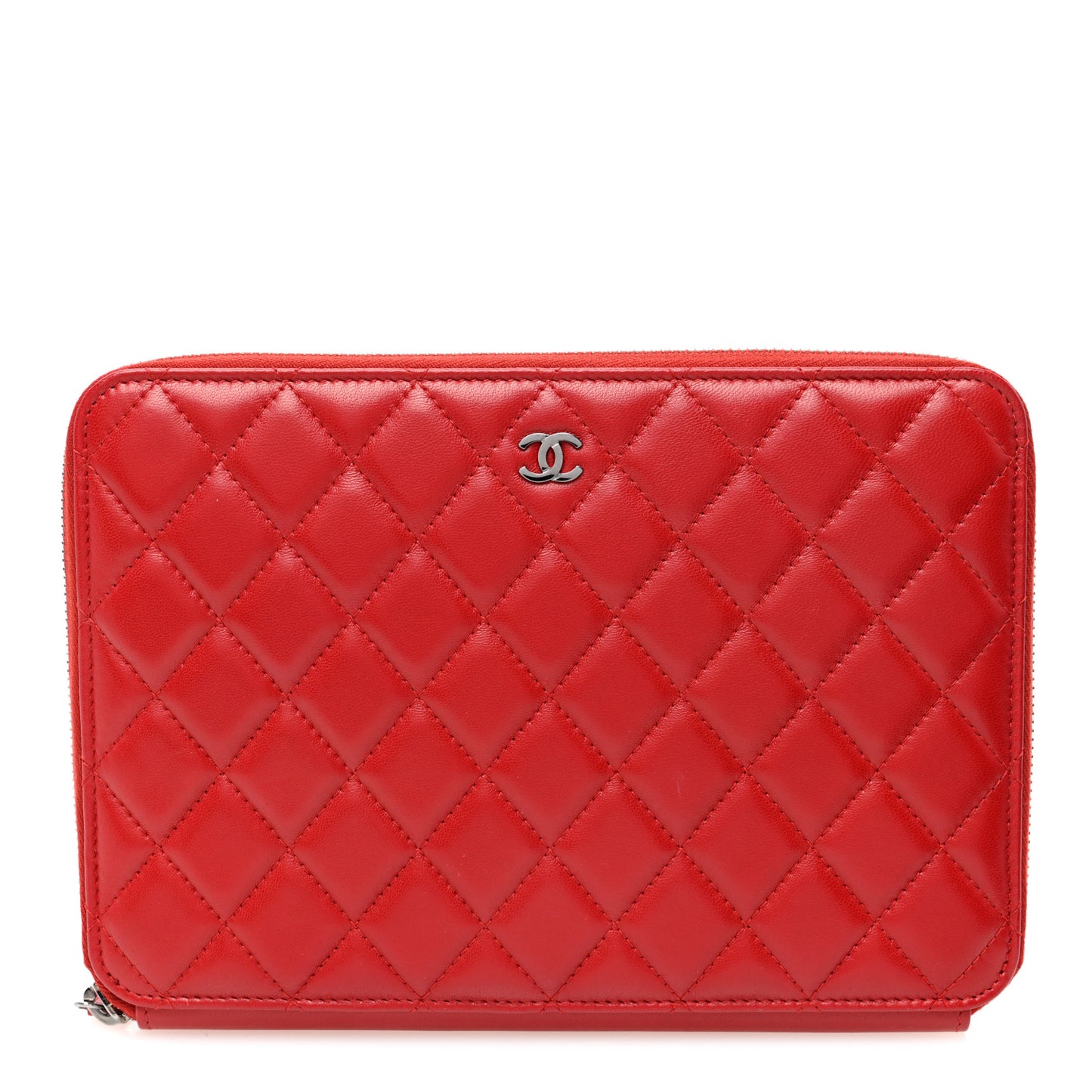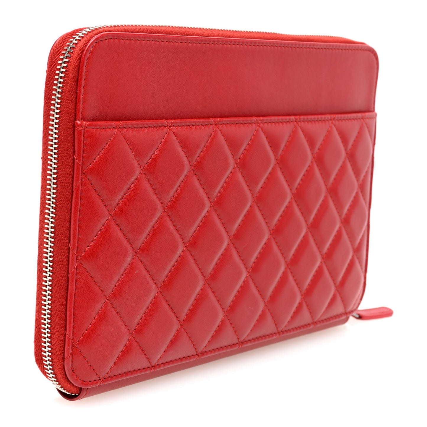This is an authentic CHANEL Lambskin Quilted Travel Case in Pink. This stylish case is crafted of luxurious lambskin diamond quilted leather in pink. The bag features a silver CC on the front panel, an exterior patch pocket, a 3/4 wrap around silver zipper that opens to a matching pink leather and fabric interior with patch pockets, a zipper compartment, and card slots.Follow this item for alerts. Chanel is a registered trademark of Chanel. FASHIONPHILE is not affiliated with Chanel.