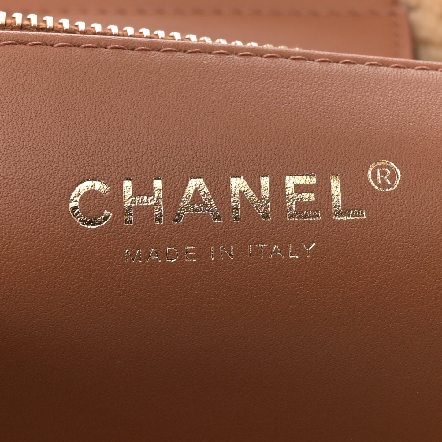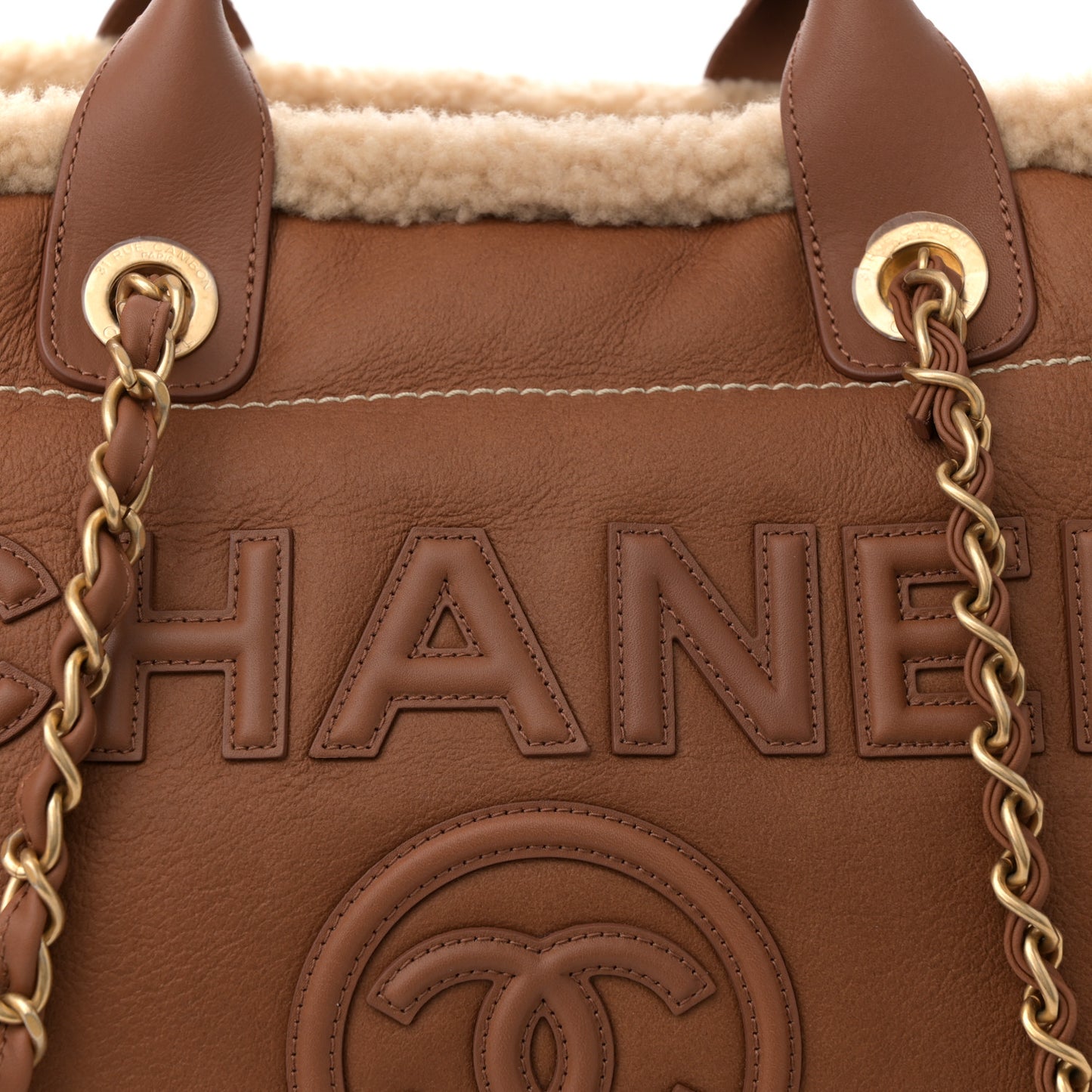 Chanel/ Bags/ Shoulder Bags /Chanel Lambskin Shearling Medium Deauville Tote Brown