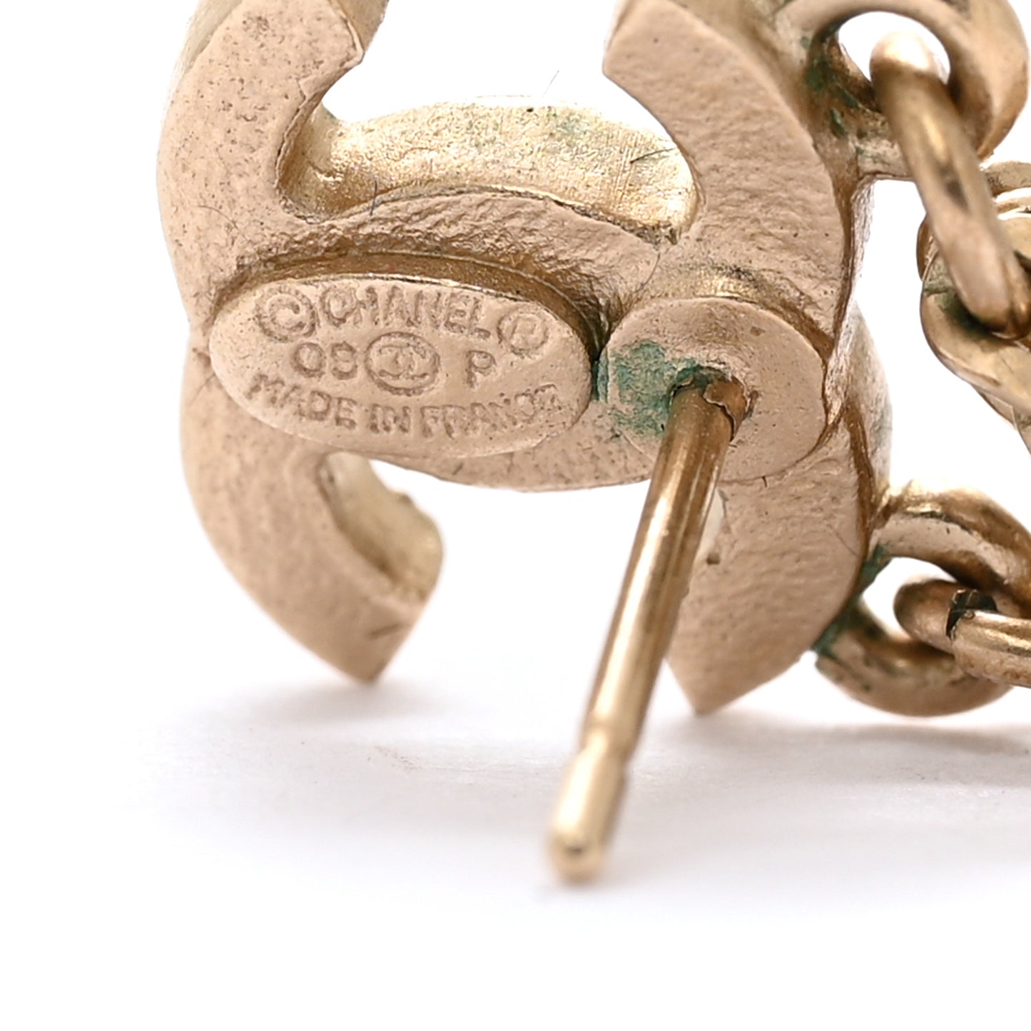 This is an authentic pair of Chanel Metal CC Chain Drop Earrings in Gold. These stunning earrings are crafted in a gold tone and feature a Chanel CC logo with the texture of miniature chains lining the surface of the symbol. Suspended from the CC are three segments of draping chain, each with a different type of chain for a one of a kind look.Follow this item for alerts. Chanel is a registered trademark of Chanel. FASHIONPHILE is not affiliated with Chanel.