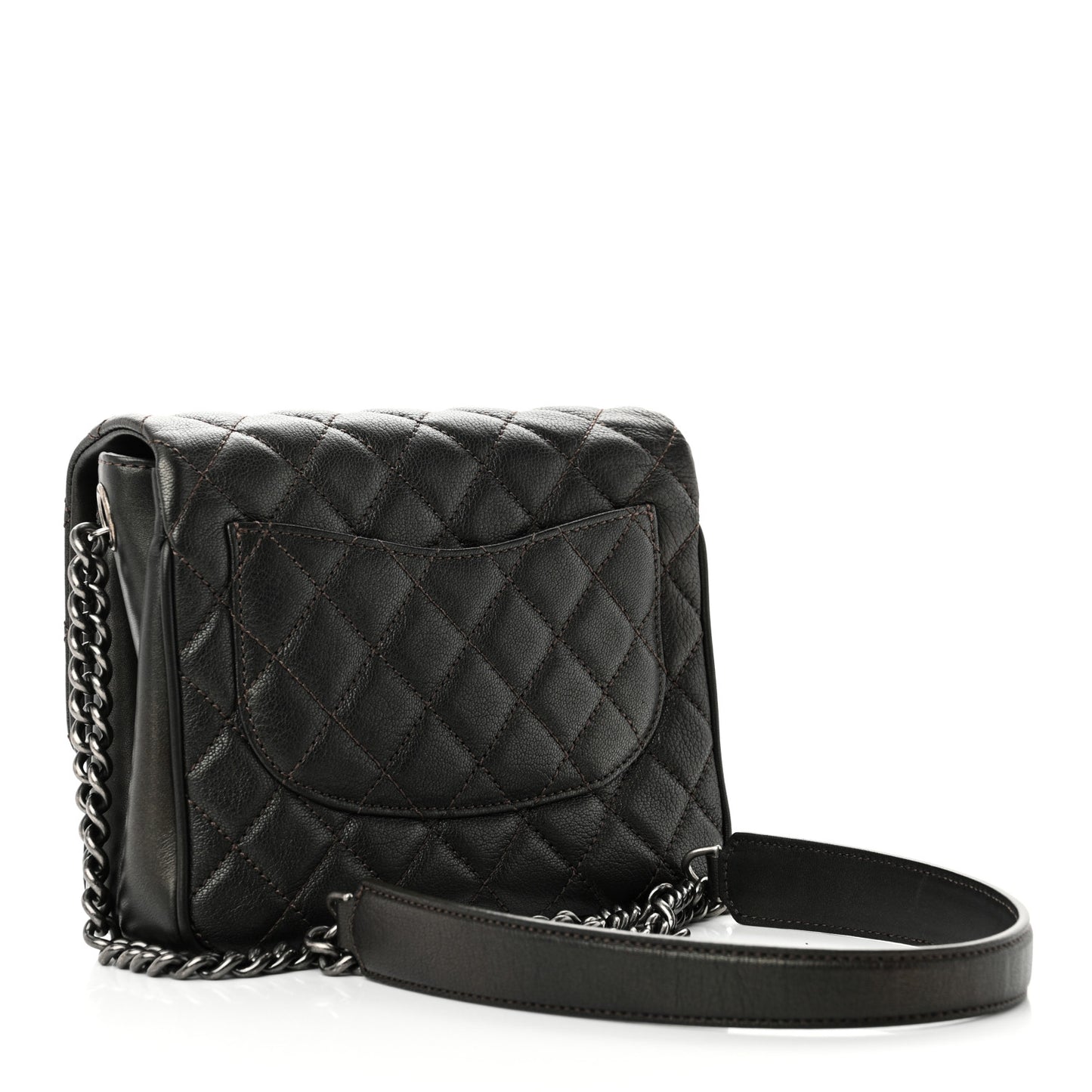 This is an authentic CHANEL Metallic Goatskin Quilted Small Rock In Rome Flap in Bronze. This stunning shoulder bag is crafted of diamond quilted padded goatskin leather in bronze. The bag features a full size rear patch pocket, a ruthenium chain link shoulder strap threaded with leather, and a ruthenium Chanel CC turn lock that opens to a black fabric interior with a zipper pocket.Follow this item for alerts. Chanel is a registered trademark of Chanel. FASHIONPHILE is not affiliated with Chanel.