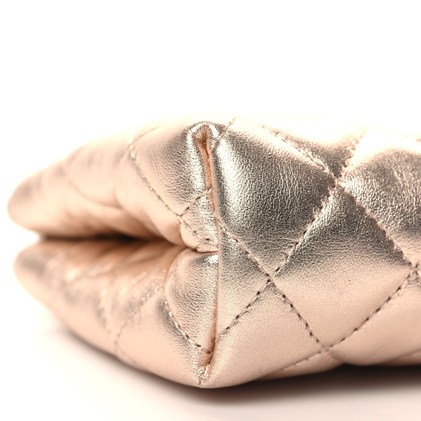This is an authentic CHANEL Metallic Lambskin Quilted Cosmetic Pouch in Light Pink. This chic pouch is crafted of diamond quilted lambskin leather in metallic rose gold, with a small silver Chanel CC logo on the front. The top zipper opens to a pink fabric interior.Follow this item for alerts. Chanel is a registered trademark of Chanel. FASHIONPHILE is not affiliated with Chanel.