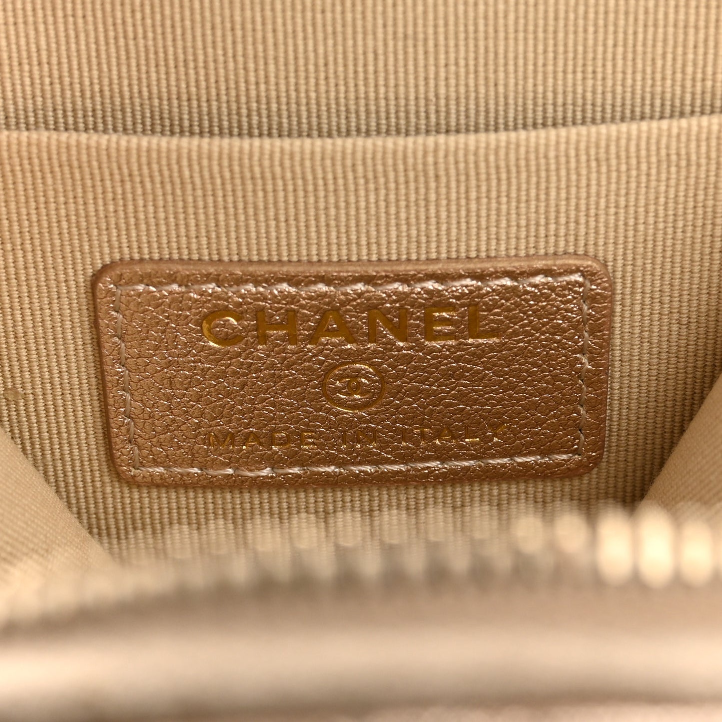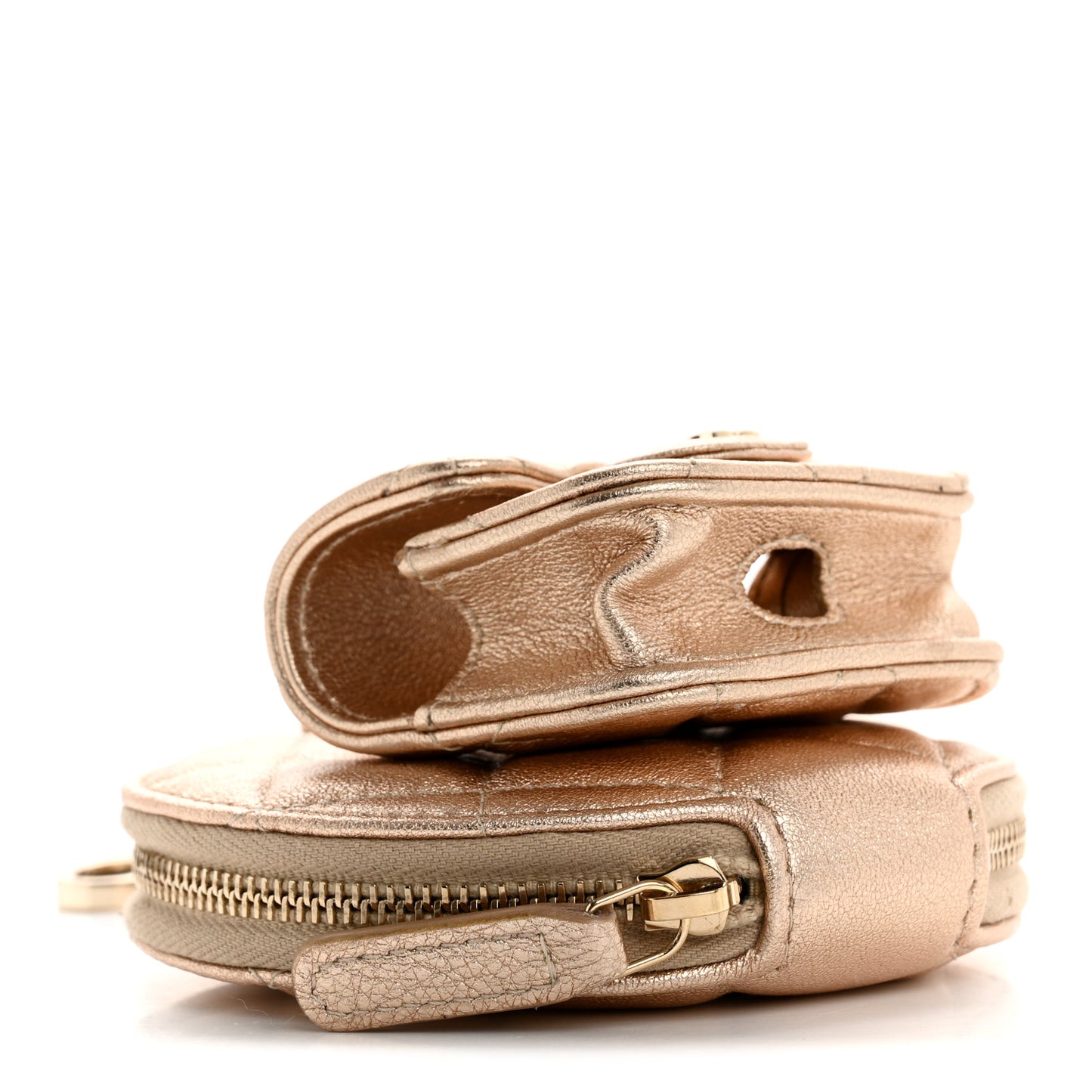 Chanel/ Accessories/ Pouches /Chanel Metallic Lambskin Quilted Round Clip On Coin Purse Airpods Case Gold