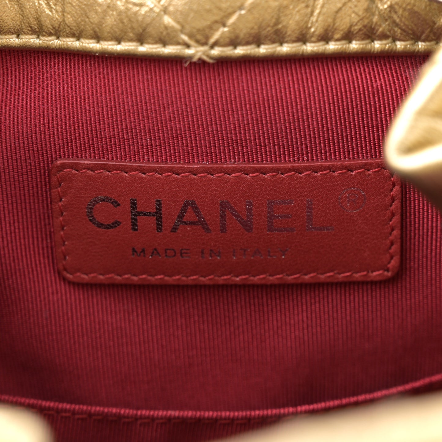 This is an authentic CHANEL Iridescent Lambskin Calfskin Small Quilted Gabrielle Backpack in Gold. This chic backpack is crafted of diamond-stitched iridescent gold lambskin leather and a smooth calfskin leather base. The shoulder bag features iridescent chain link leather threaded shoulder straps and an open top. The top opens to a spacious deep red fabric interior with a pocket.Follow this item for alerts. Chanel is a registered trademark of Chanel. FASHIONPHILE is not affiliated with Chanel.