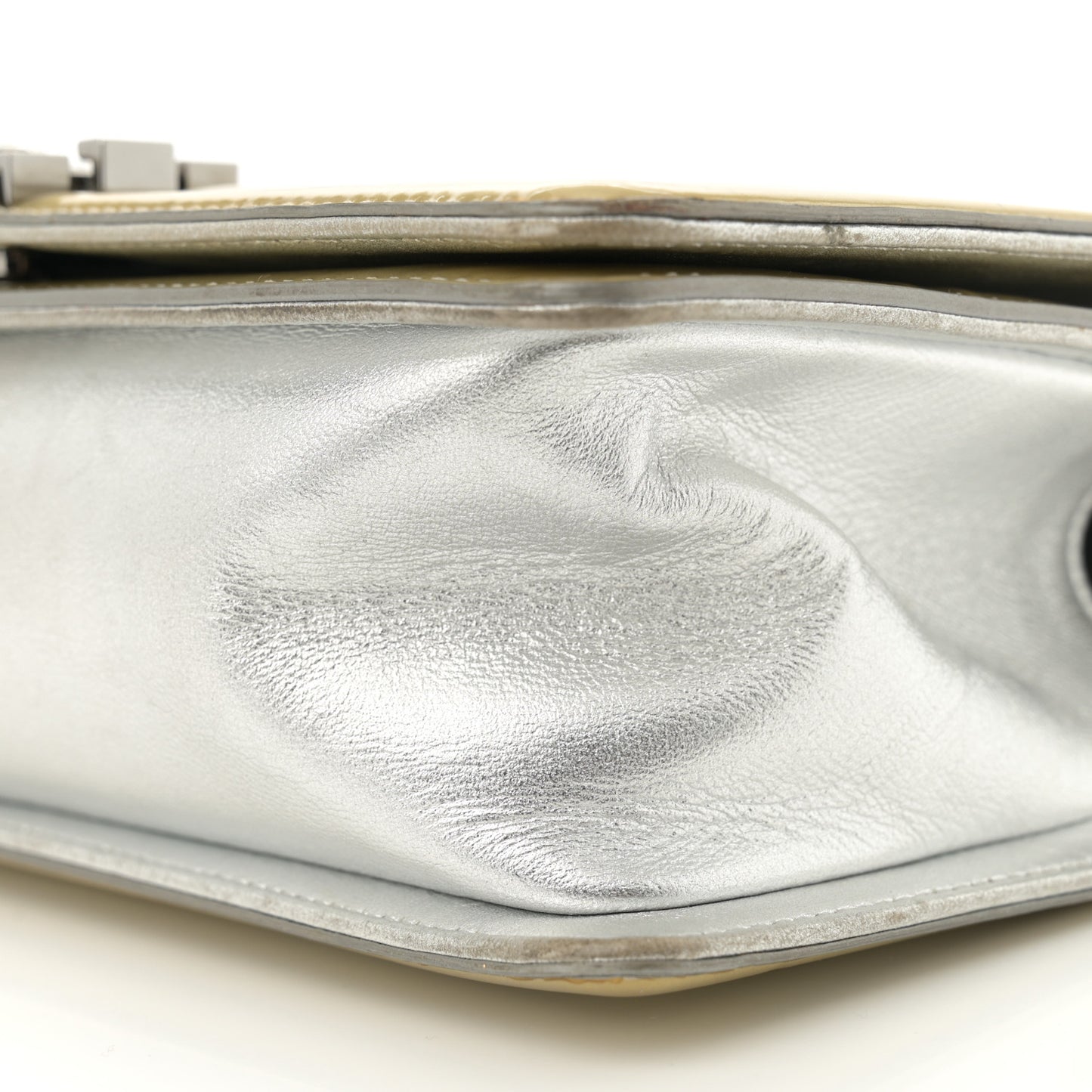 Metallic Patent Calfskin Quilted Medium Boy Flap Gold
