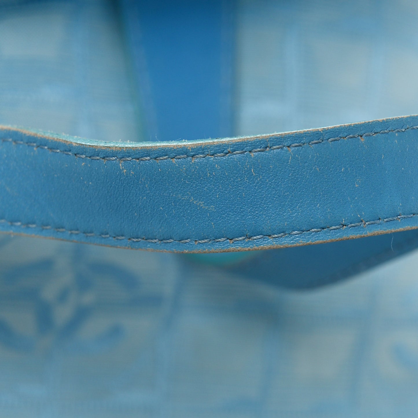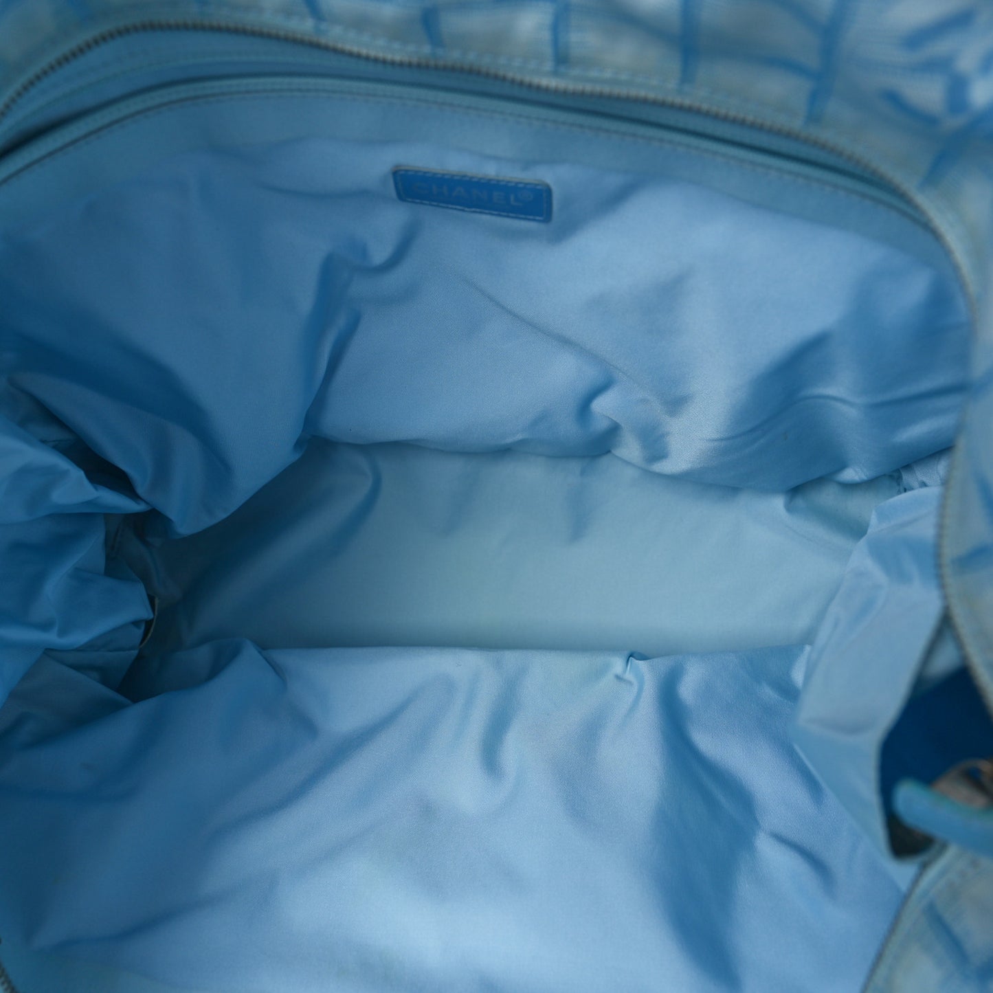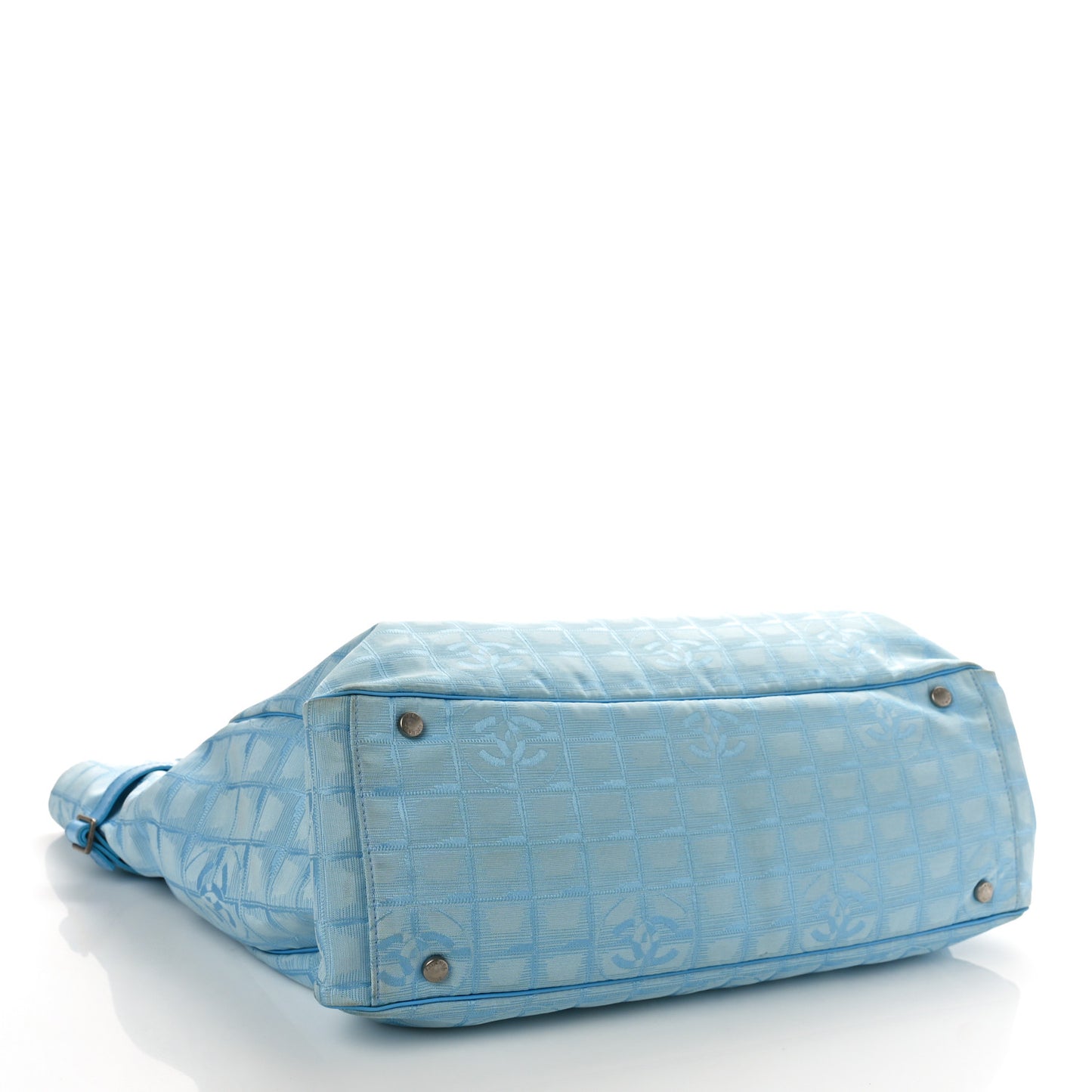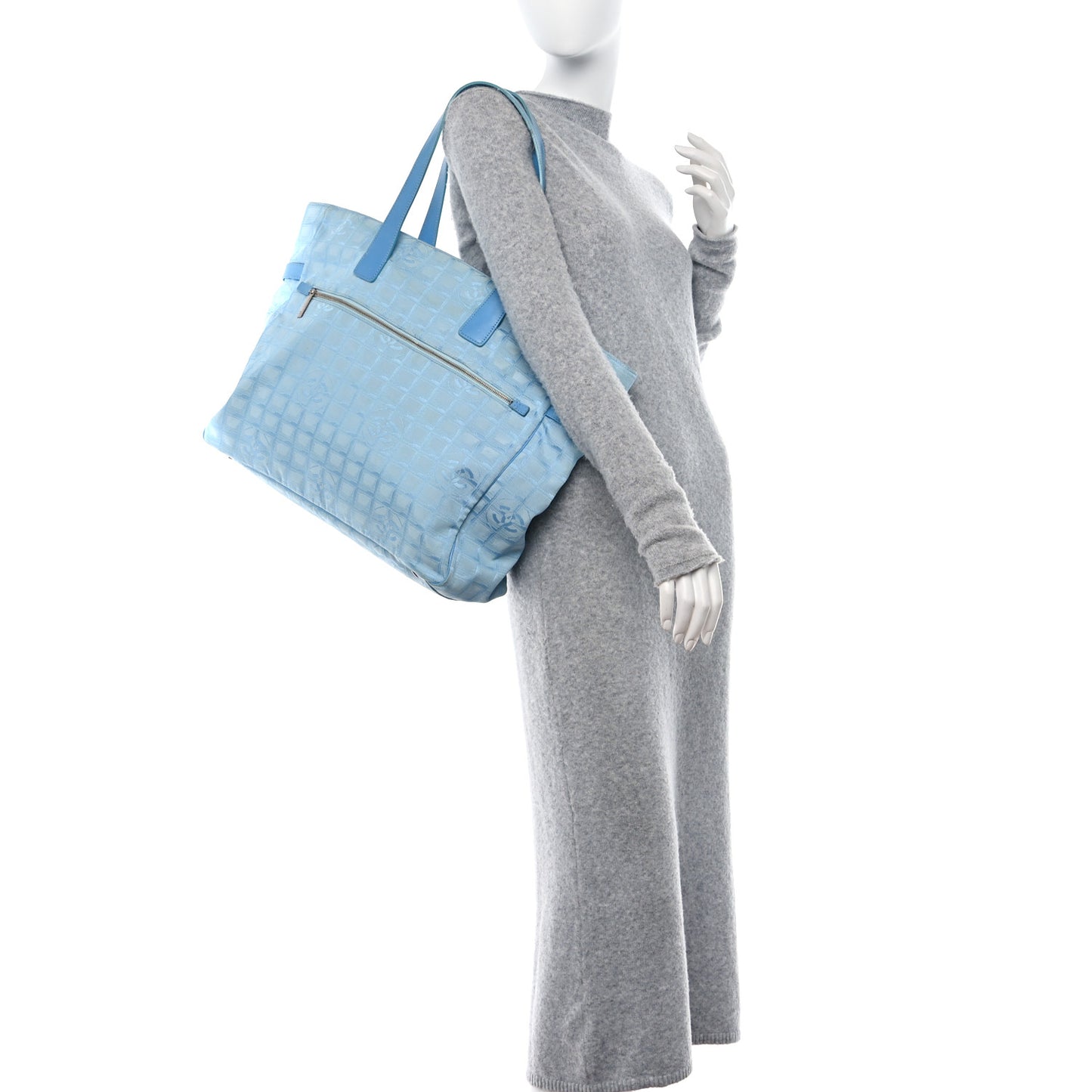 This is an authentic CHANEL Nylon Travel Tote in Blue. This chic tote is crafted of nylon CC logo jacquard fabric in blue. It features leather shoulder straps, piping, large front zipper pocket and silver hardware. The top is open to a spacious blue fabric interior with zipper and flat pockets.Follow this item for alerts. Chanel is a registered trademark of Chanel. FASHIONPHILE is not affiliated with Chanel.