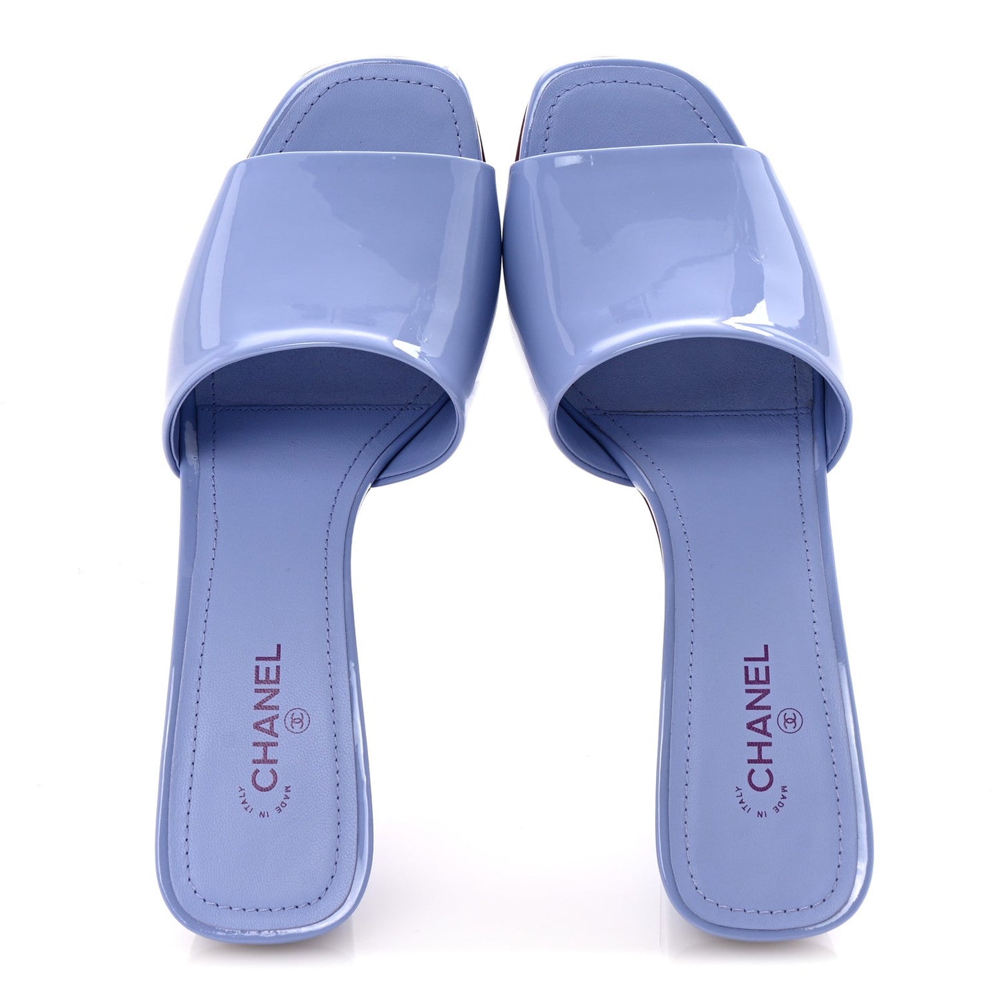 Chanel/ Accessories/ Shoes /Chanel Patent Calfskin CC Mules 40 Light Purple Dark Purple