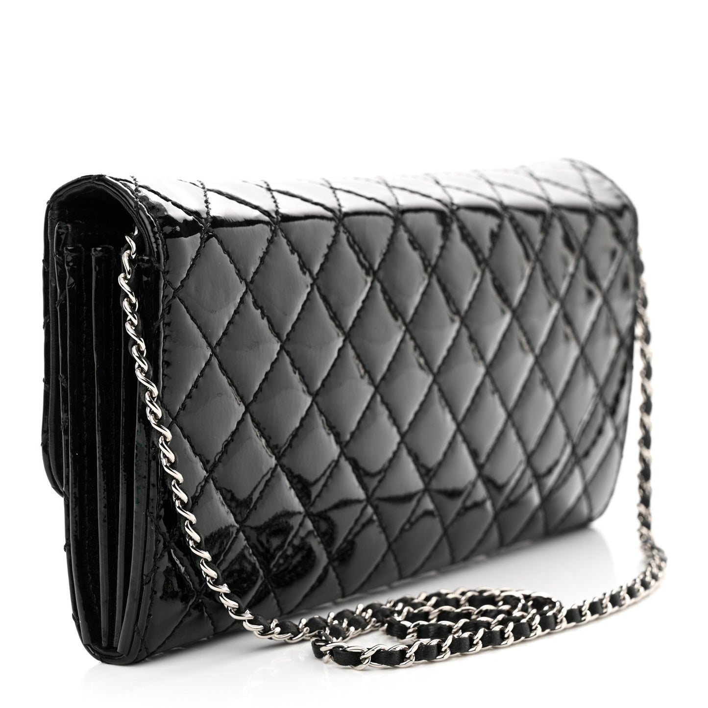 Chanel/ Bags/ Wallet Style /Chanel Patent Calfskin Quilted Flap Clutch With Chain Black