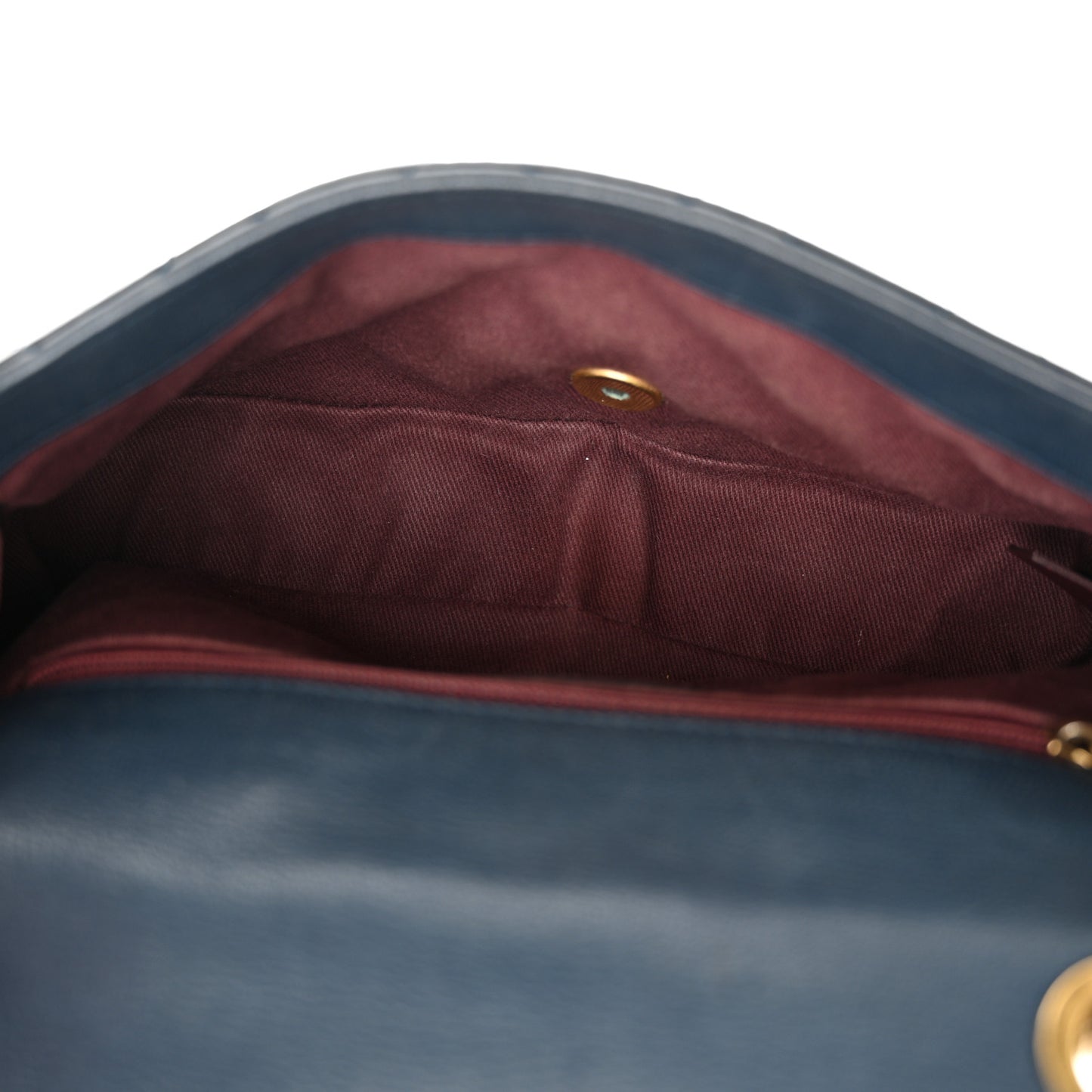 Patent Goatskin Quilted Medium CC Eyelet Flap Blue