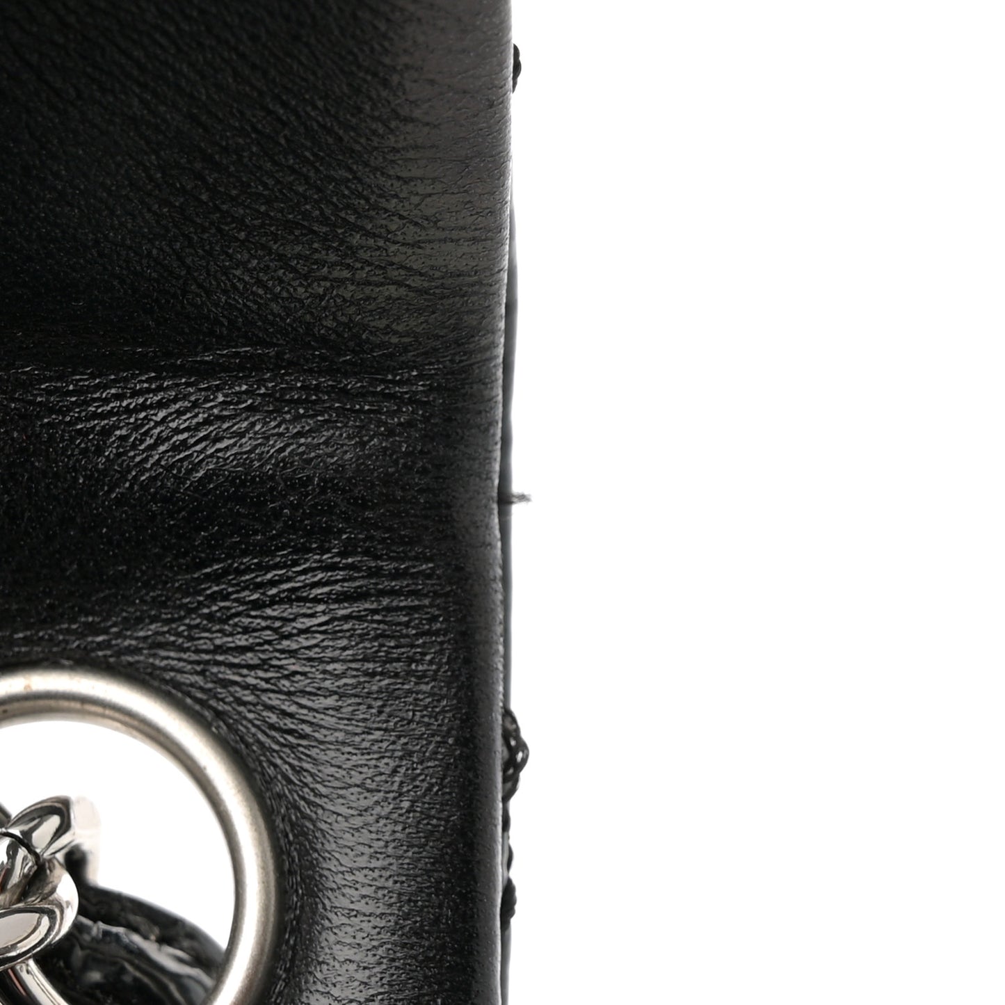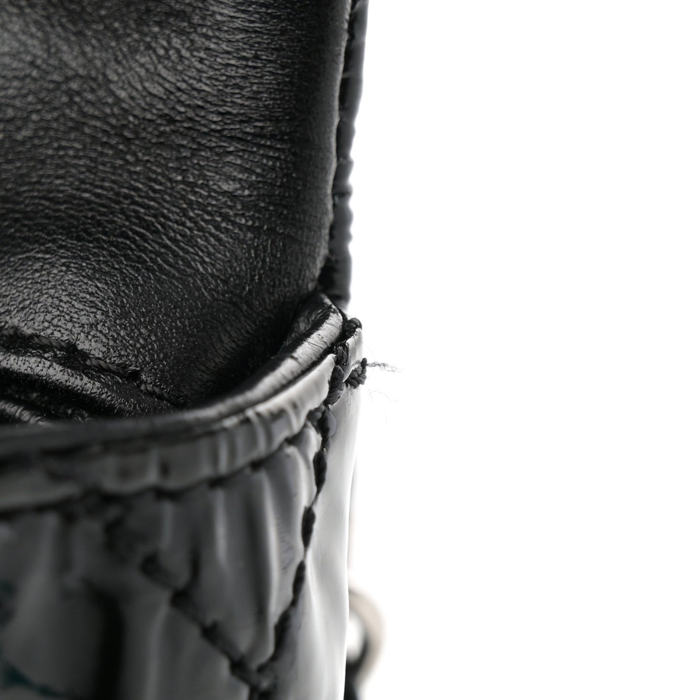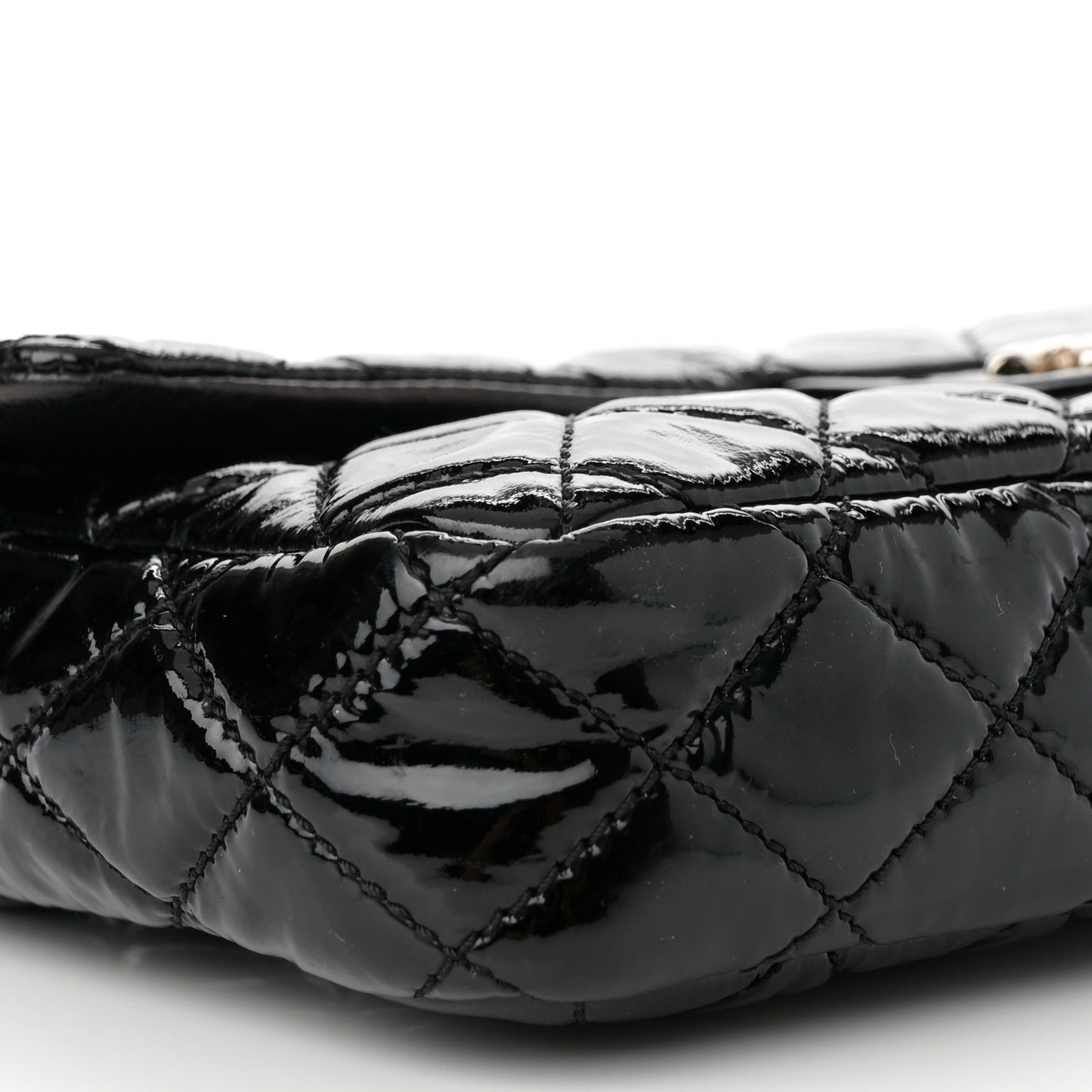 This is an authentic CHANEL Patent Quilted Medium Single Flap in Black. This chic shoulder bag is crafted of shiny diamond quilted patent leather in black. The bag features a leather threaded silver chain link crossbody shoulder strap with a matching Chanel CC turn lock. This opens the flap to a black leather interior with patch pockets.Follow this item for alerts. Chanel is a registered trademark of Chanel. FASHIONPHILE is not affiliated with Chanel.