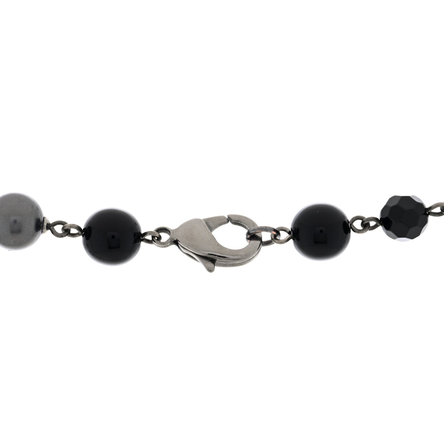 Pearl Bead Enamel CC Long Necklace Silver Black Grey