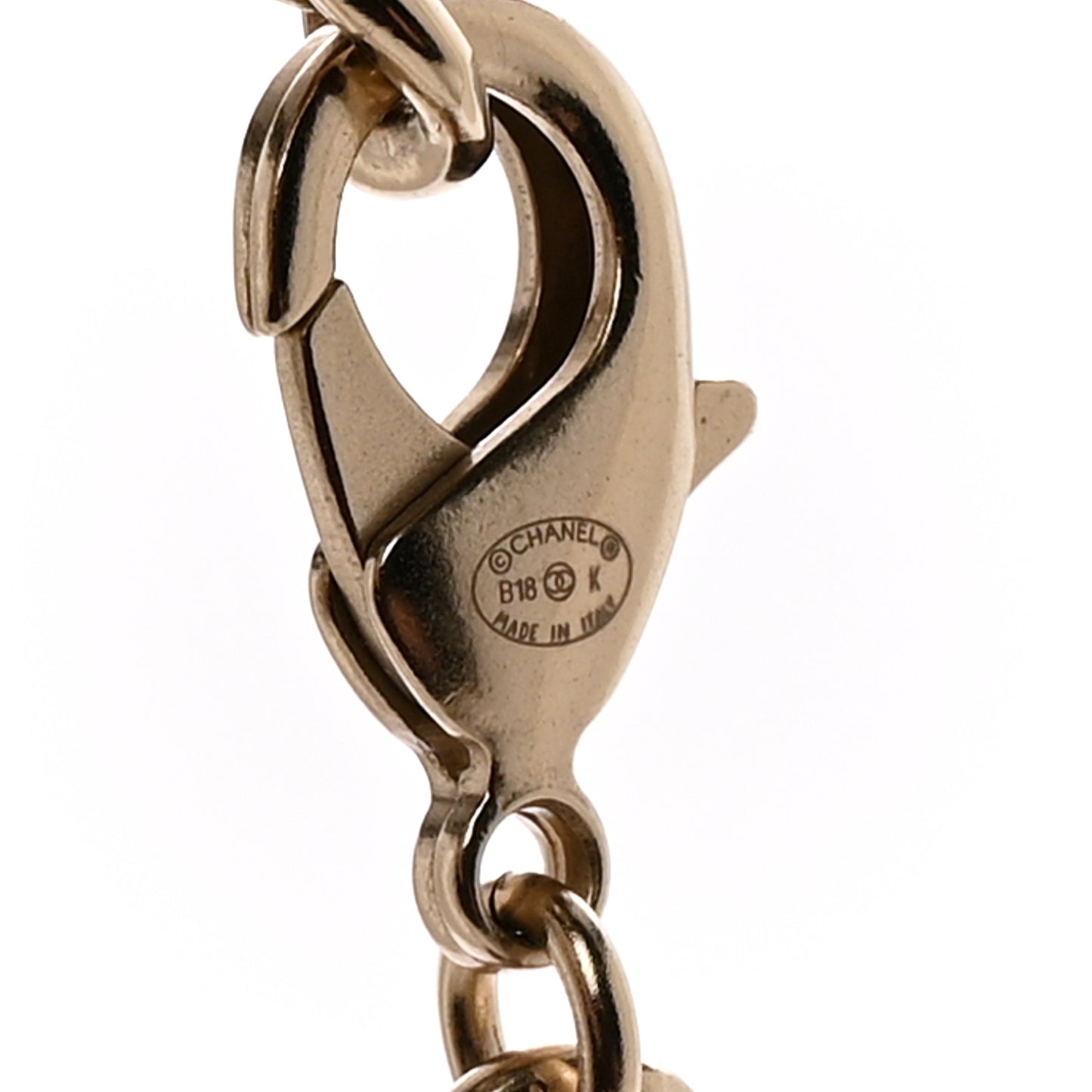 Pearl Lambskin Chain CC Multi Strand Necklace Gold Black