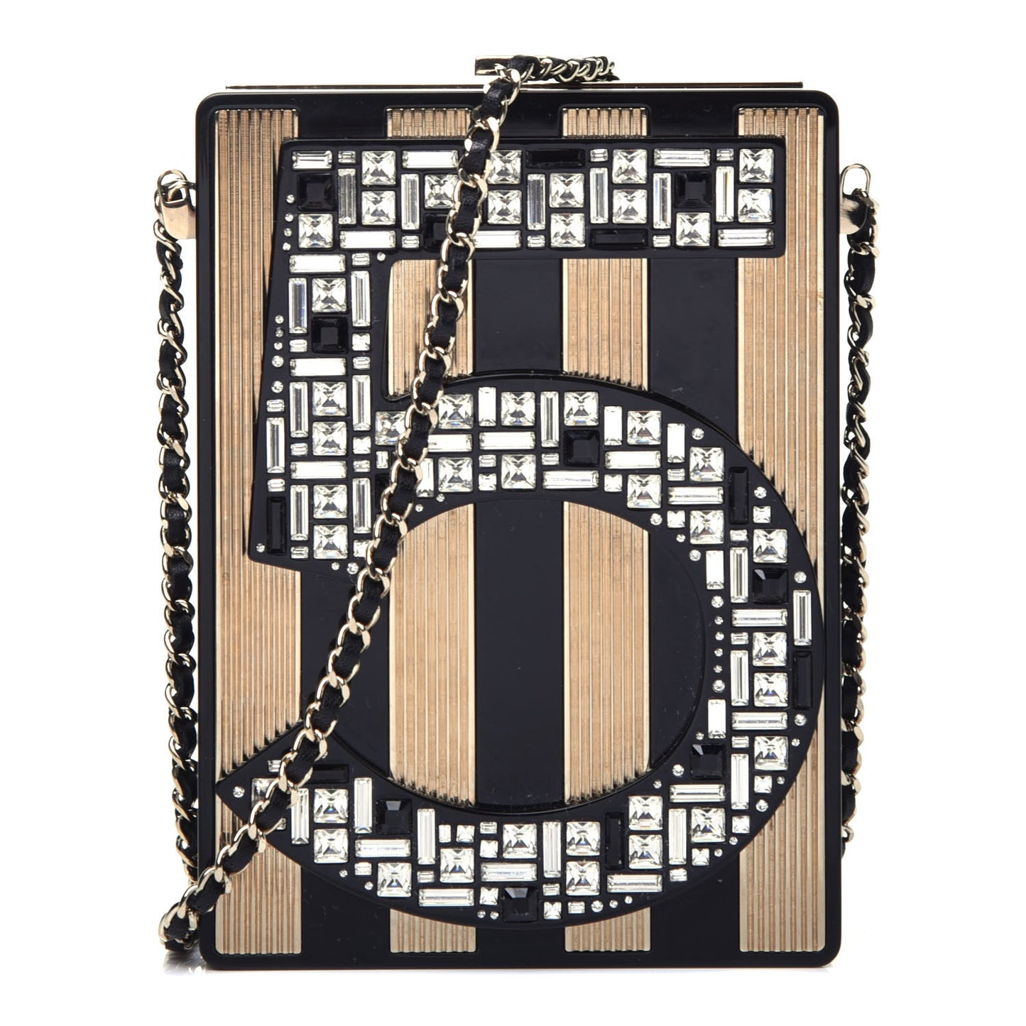 Chanel/ Bags/ Shoulder Bags /Chanel Plexiglass Strass Mosaic No 5 Minaudière Clutch Black Gold