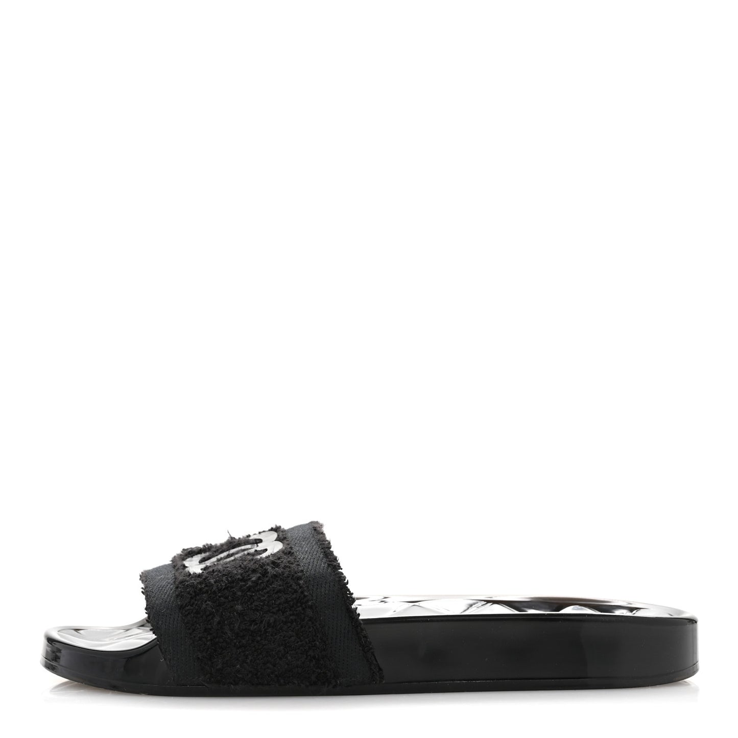 PVC Fabric CC Flat Slide Sandals 39 Black