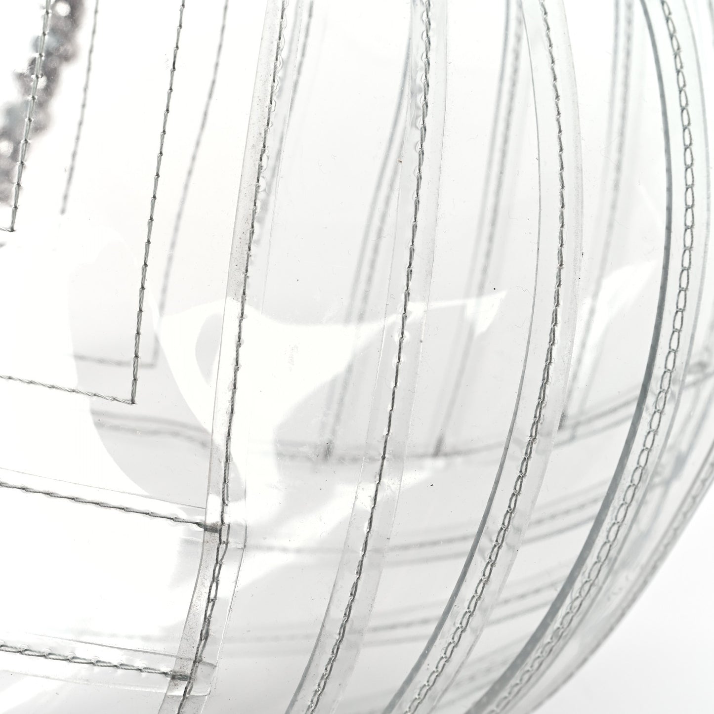 This is an authentic CHANEL PVC Hobo in Transparent. This stylish bucket bag is crafted of clear PVC with a Chanel CC logo and a stitched wedge design. It features a leather threaded silver chain link shoulder strap, an open top and a see through interior.Follow this item for alerts. Chanel is a registered trademark of Chanel. FASHIONPHILE is not affiliated with Chanel.