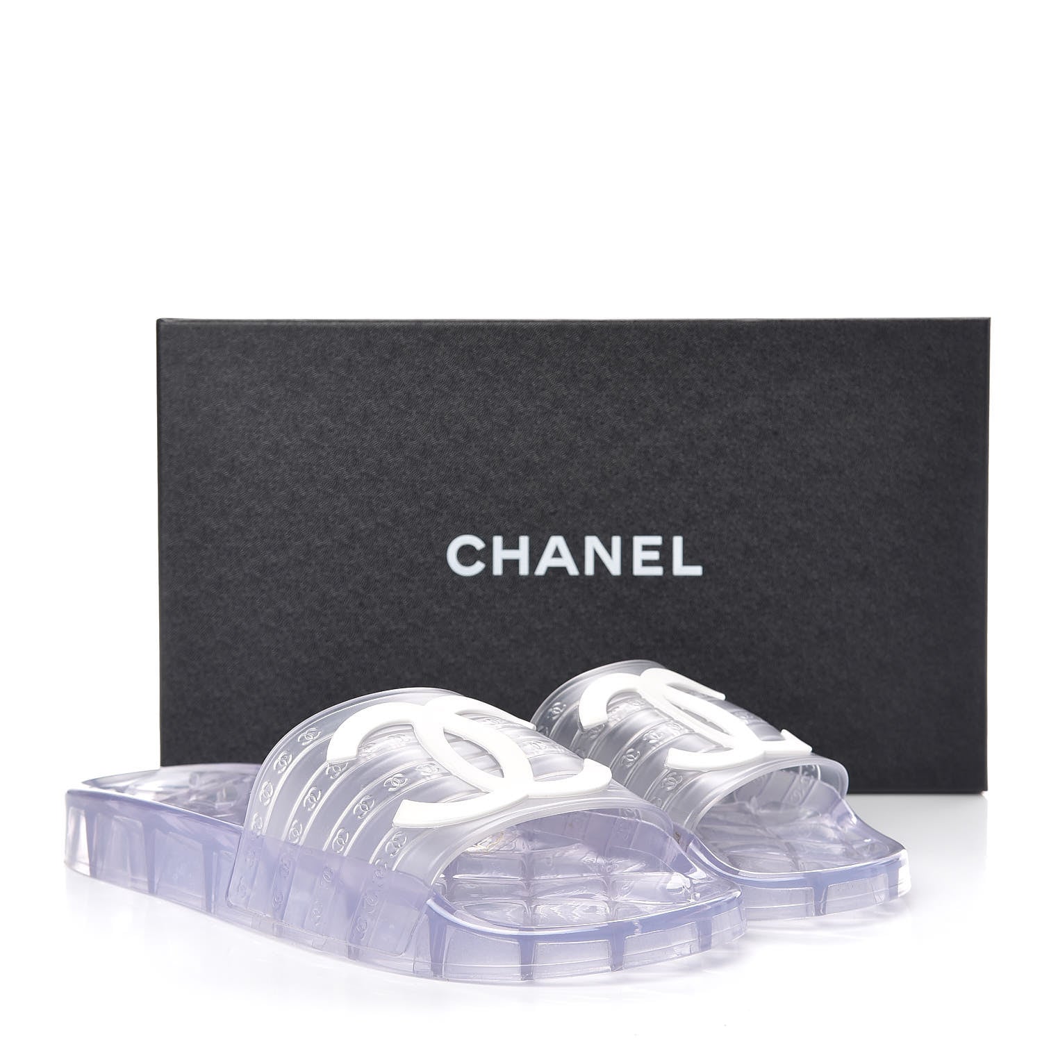 Chanel/ Accessories/ Shoes /Chanel PVC Transparent CC Flat Slide Sandals 40 White