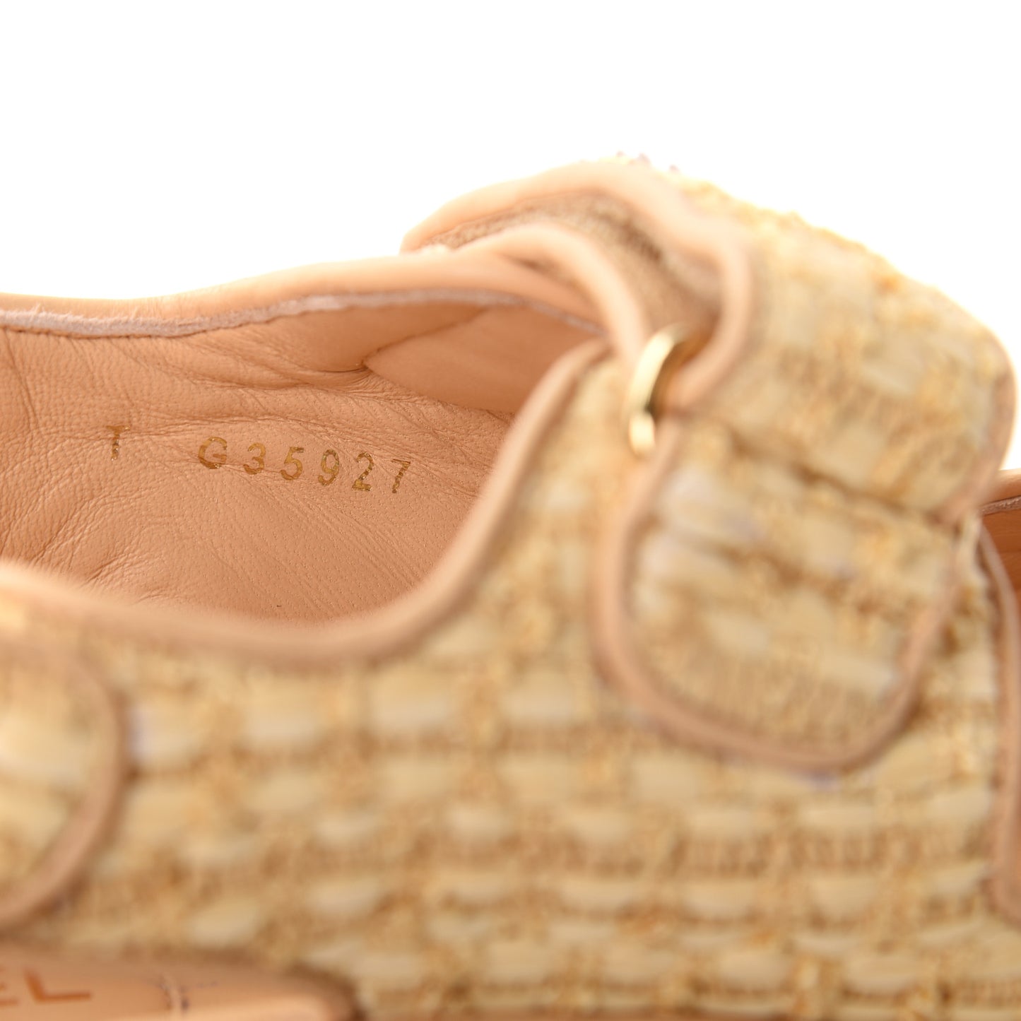 Chanel/ Accessories/ Shoes /Chanel Raffia Pearl Velcro Dad Sandals 37 Beige