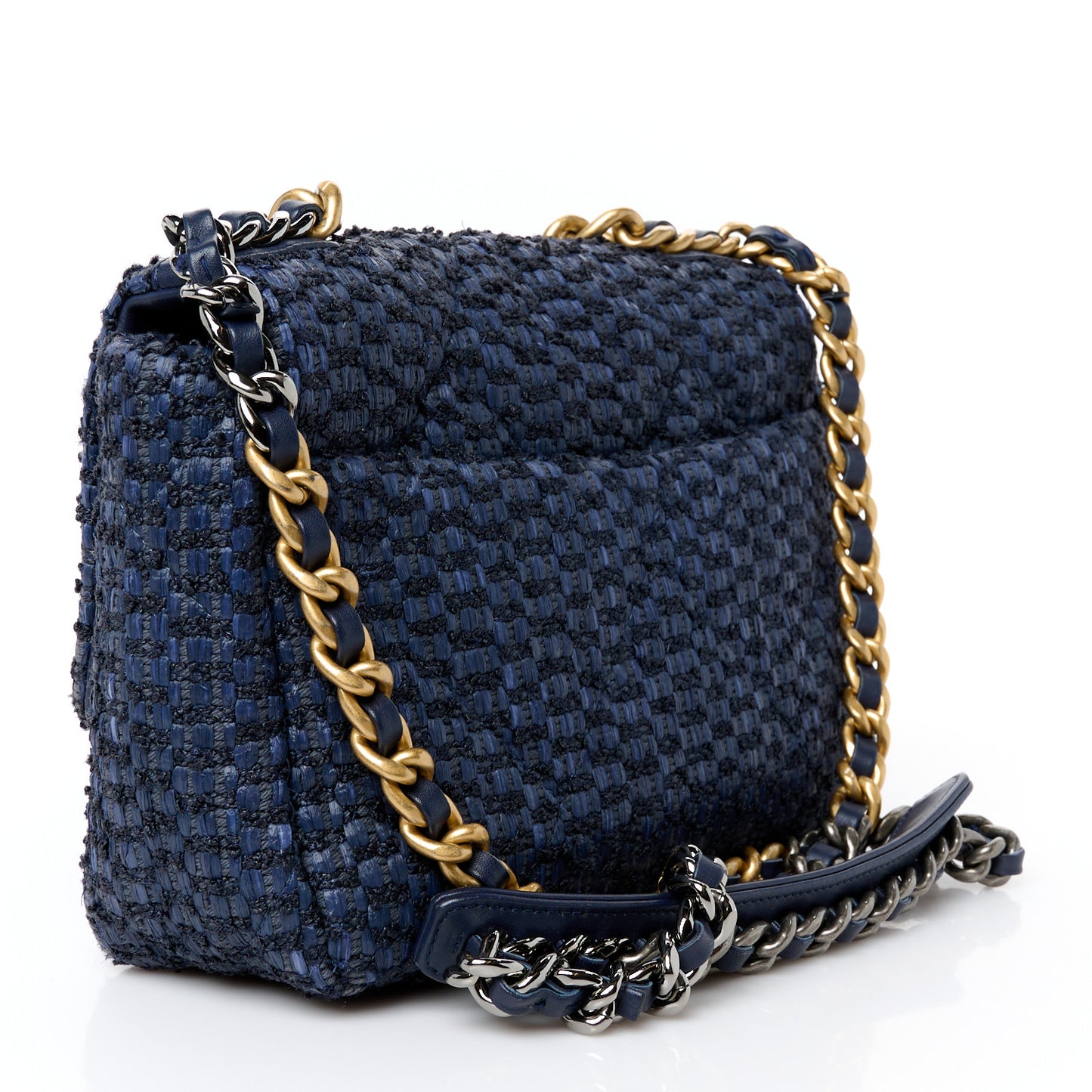 Raffia Tweed Quilted Medium Chanel 19 Flap Navy