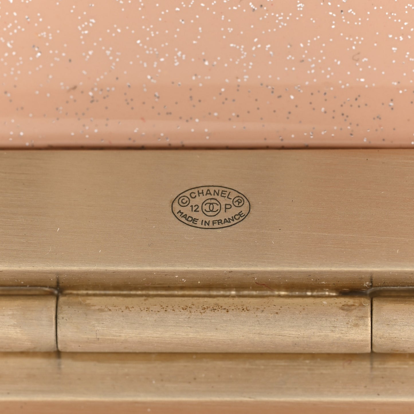 This is an authentic CHANEL Resin Crystal Pearl Coral Reef CC Cuff in Beige. This bold and elaborate cuff is crafted of beige resin. The cuff has a large setting in the resin with a gold Chanel CC with crystals, pearls and an orange piece or a coral reef. The cuff opens at a hinge with magnets.Follow this item for alerts. Chanel is a registered trademark of Chanel. FASHIONPHILE is not affiliated with Chanel.