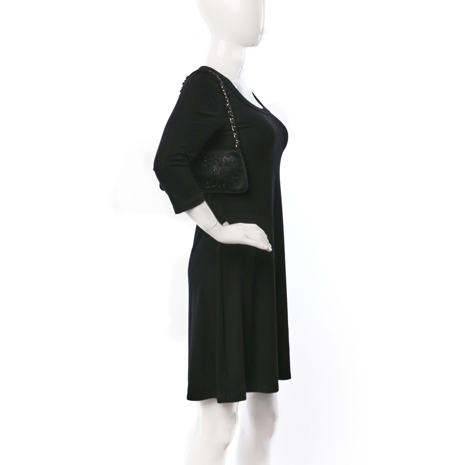 This is an authentic CHANEL Satin Crystal Camellia Evening Bag in Black. This elegant streamlined shoulder bag is crafted of an embellished satin fabric in black. The bag features a polished silver chain leather threaded strap and black beads. The flap opens to a black satin interior.Follow this item for alerts. Chanel is a registered trademark of Chanel. FASHIONPHILE is not affiliated with Chanel.