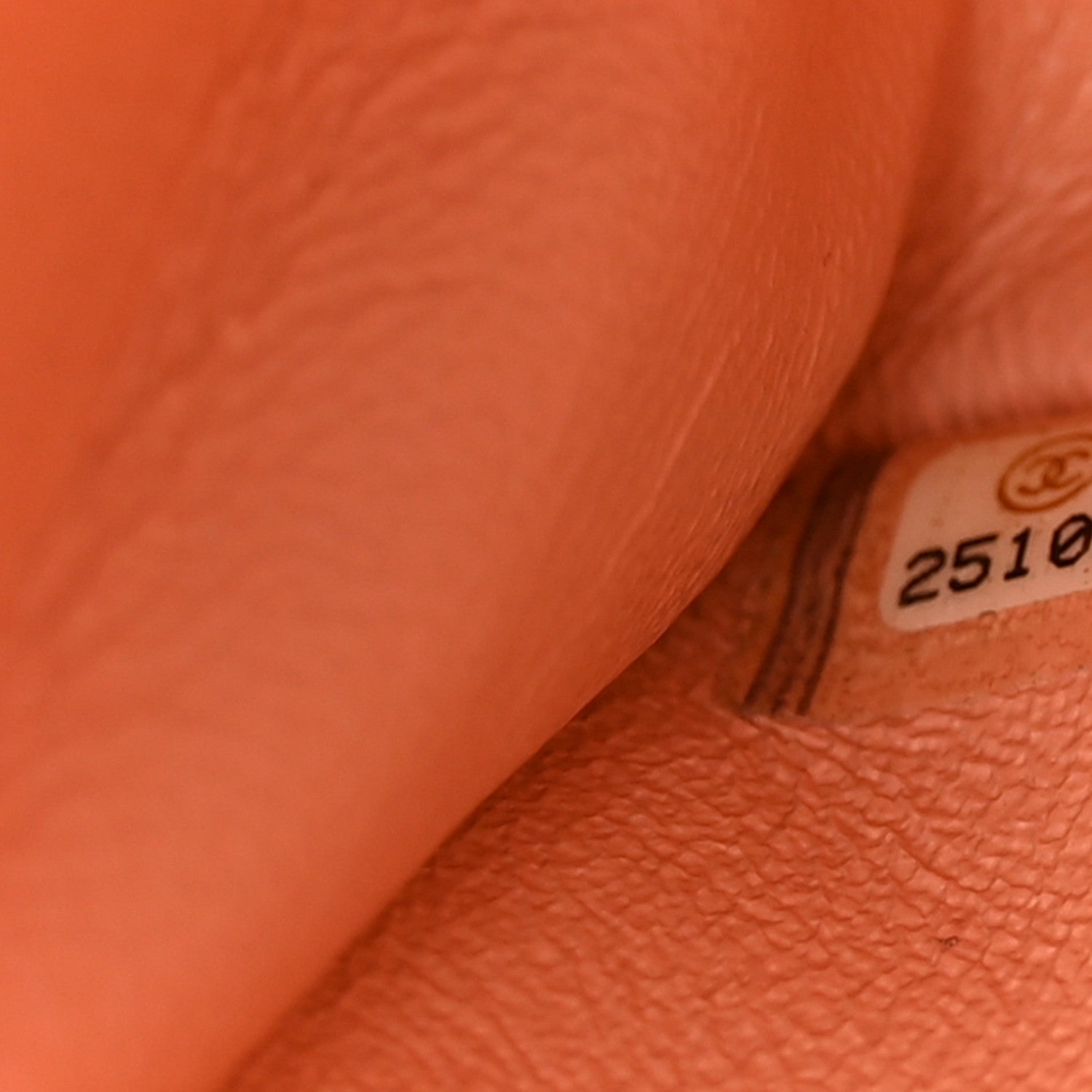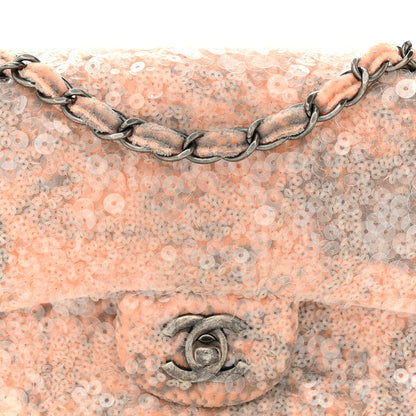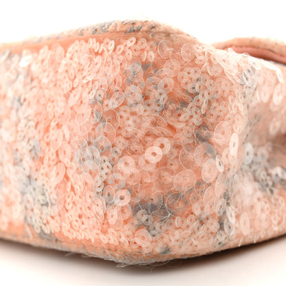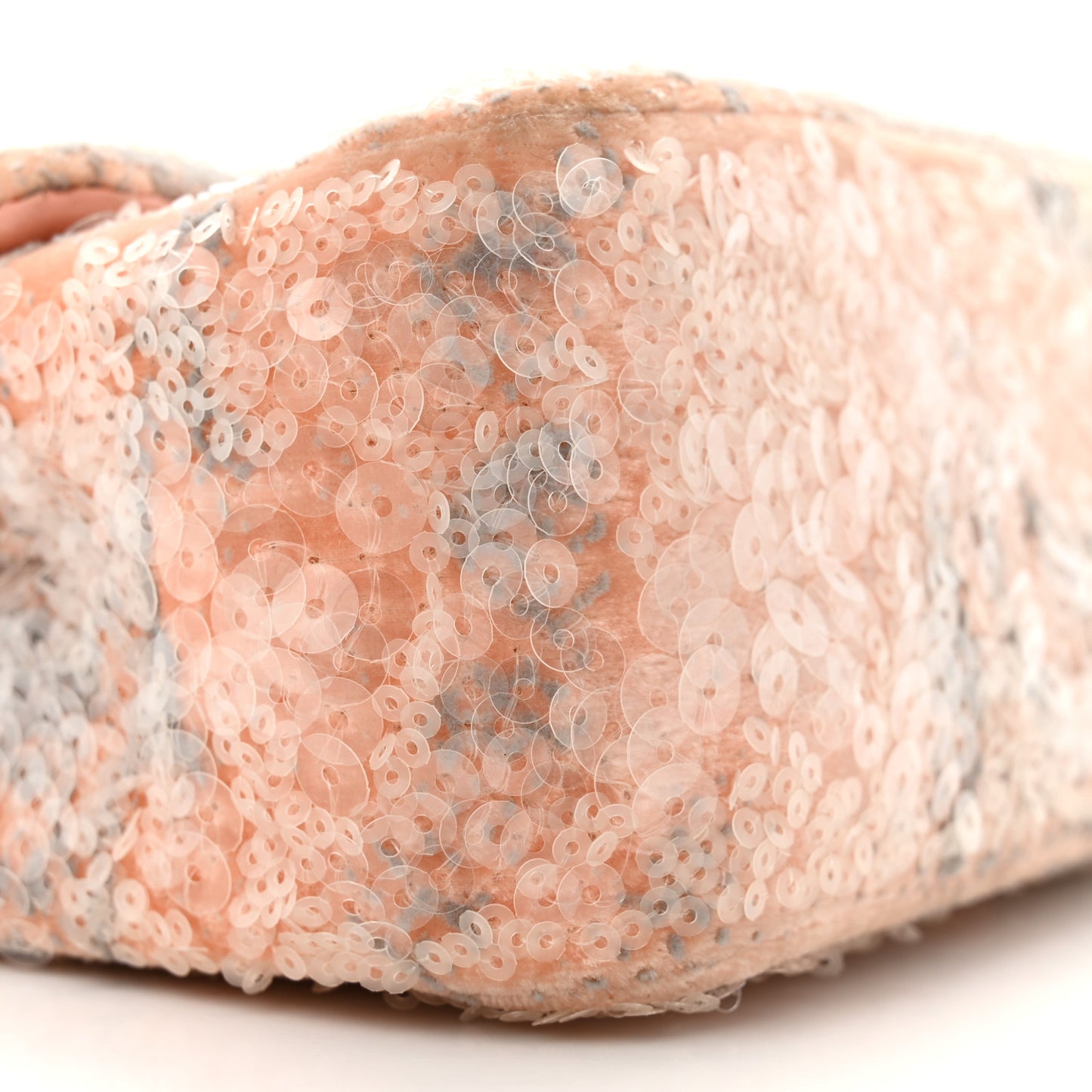 This is an authentic CHANEL Sequin Mini Flap in Light Orange in Grey. This small flap bag is beautifully crafted of orange and clear sequins over the entire surface of the bag. The bag features a long silver chain shoulder strap threaded with pink lambskin, and a silver Chanel CC turn-lock accented with pink glitter enamel. This opens to a leather interior with a zipper pocket.Follow this item for alerts. Chanel is a registered trademark of Chanel. FASHIONPHILE is not affiliated with Chanel.