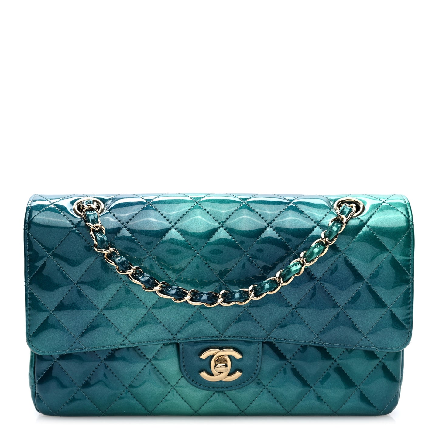 Chanel/ Bags/ Shoulder Bags /Chanel Shaded Patent Calfskin Quilted Medium Double Flap Green Blue