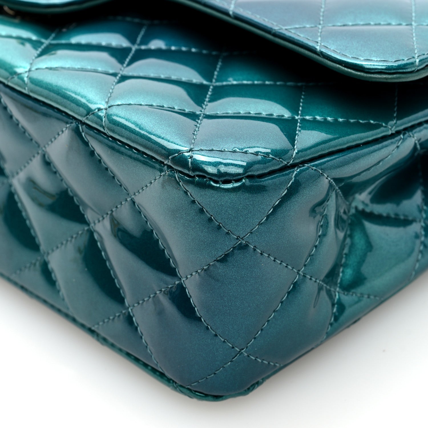Shaded Patent Calfskin Quilted Medium Double Flap Green Blue