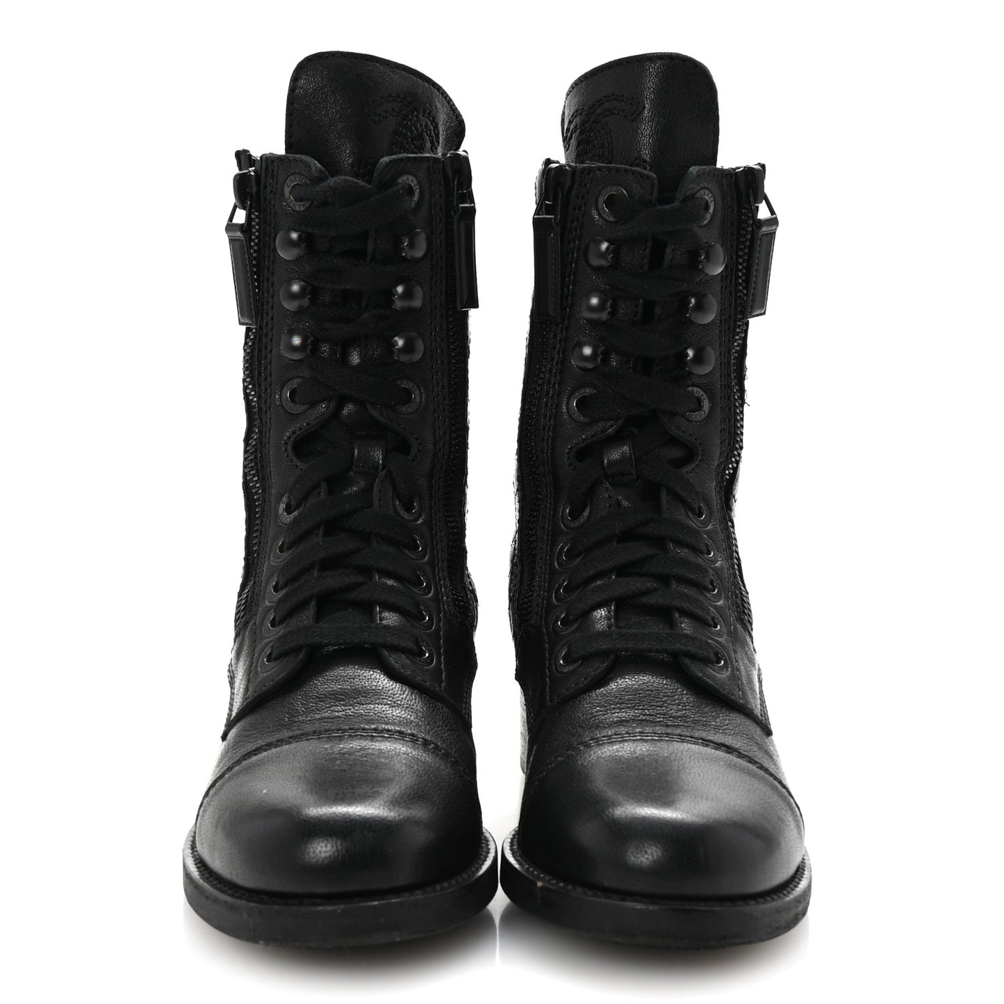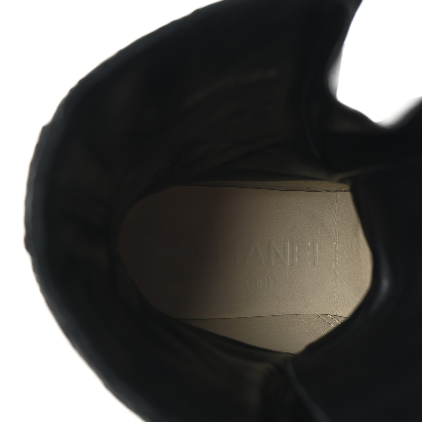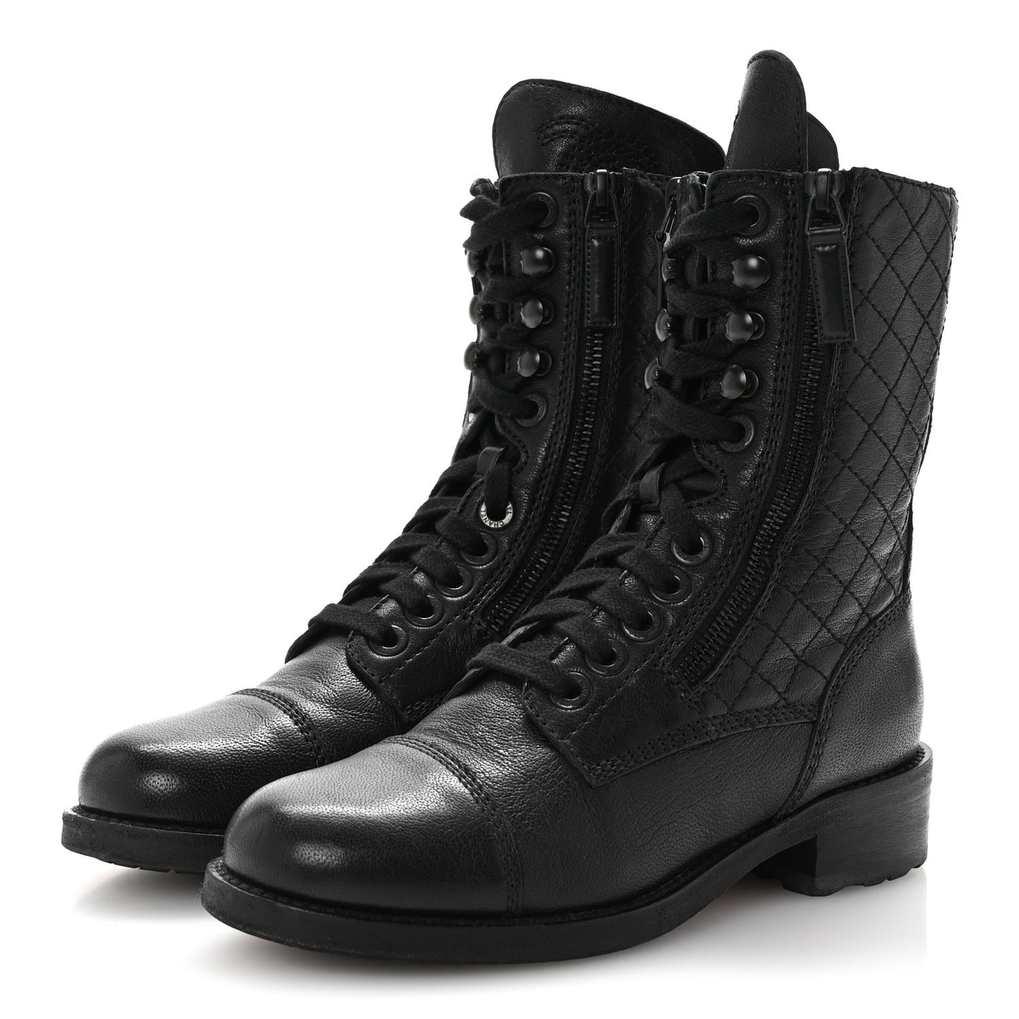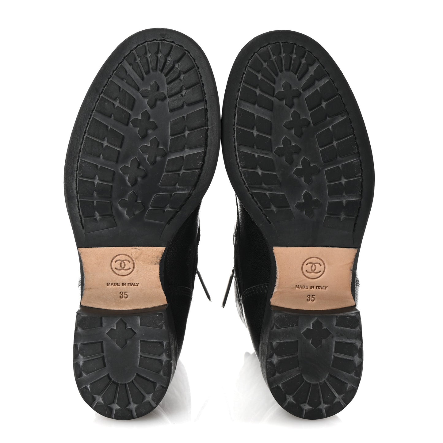 Chanel/ Accessories/ Shoes /Chanel Sheepskin Quilted CC Tall Lace Up Combat Boots 35 Black