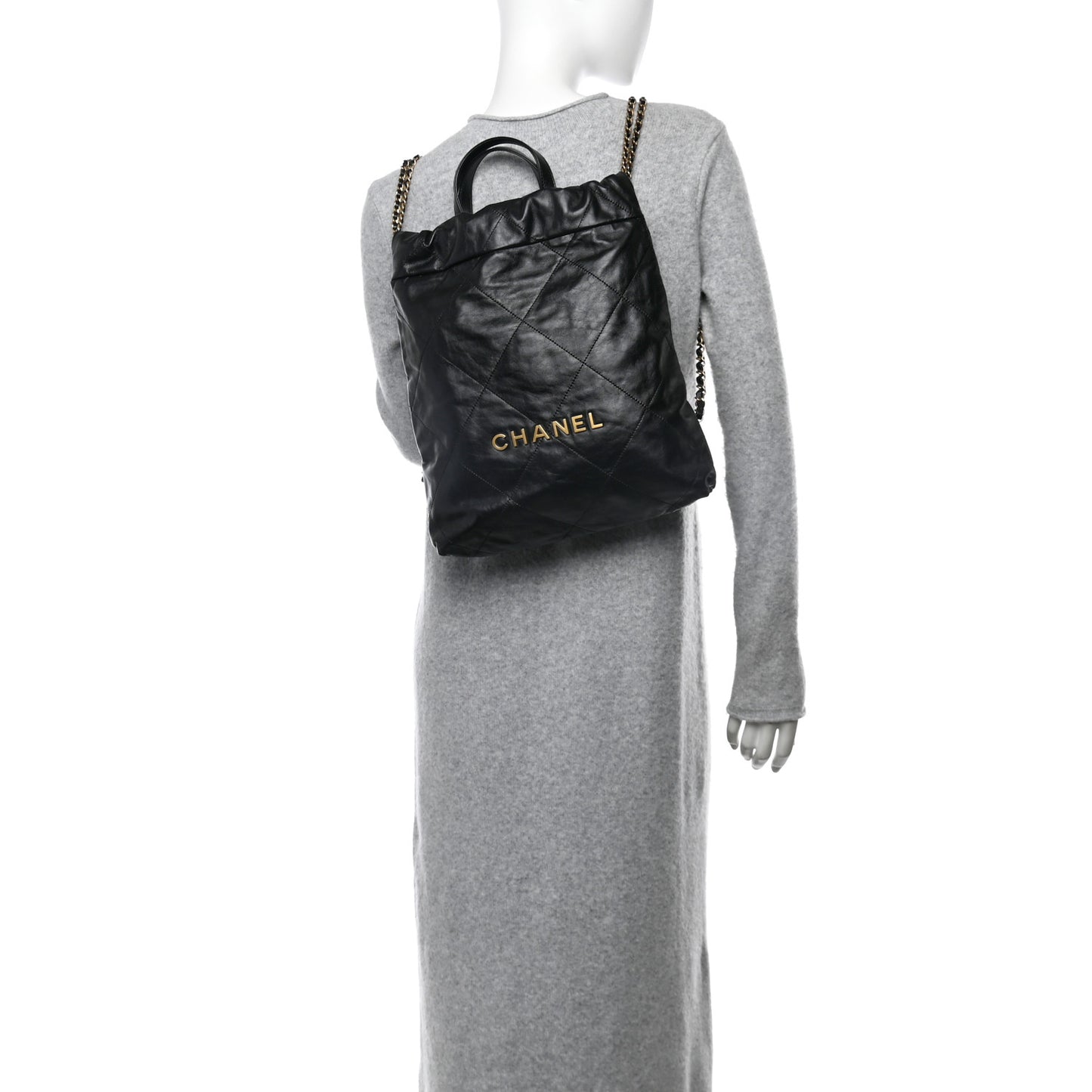 Shiny Calfskin Quilted Chanel 22 Backpack Black