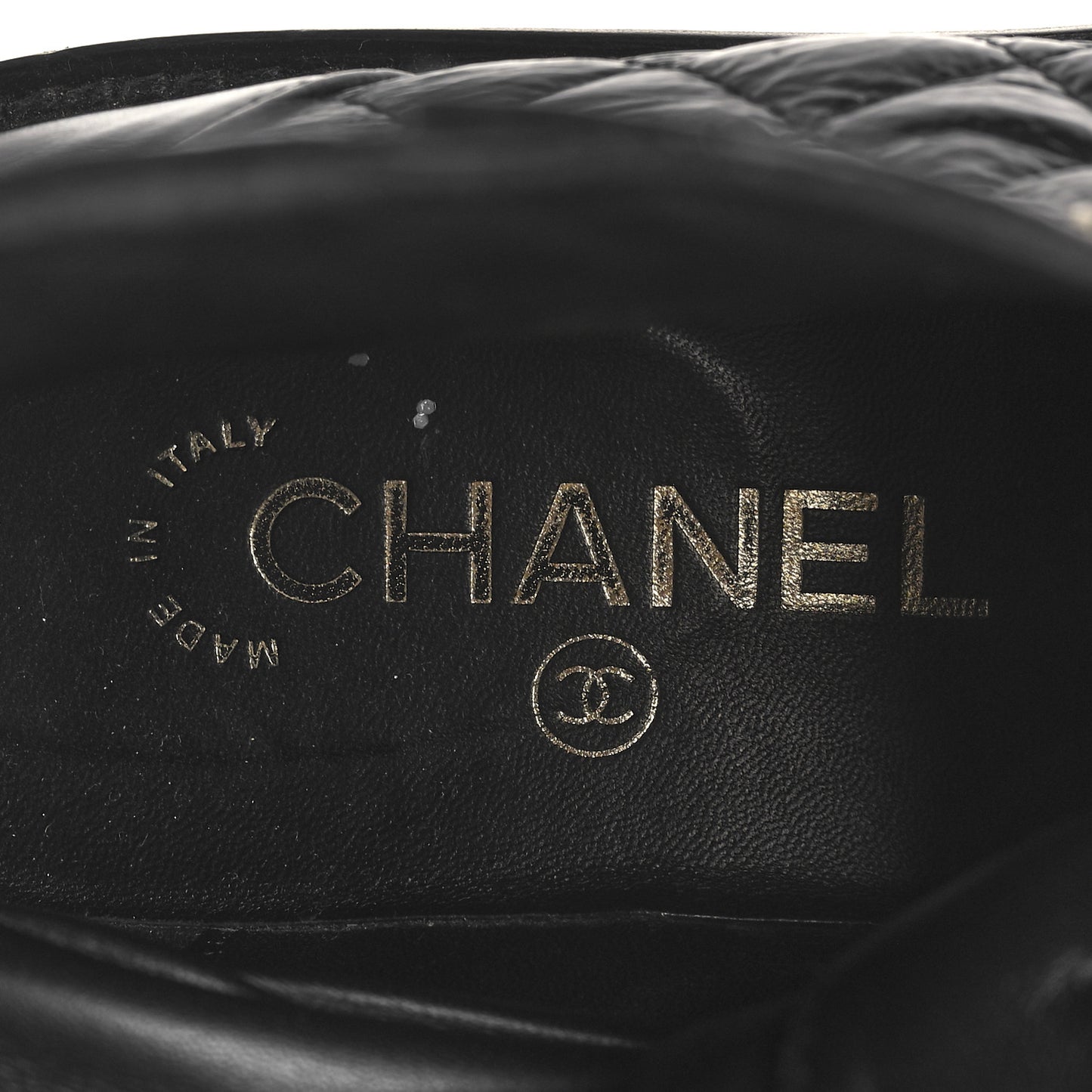 Chanel/ Accessories/ Shoes /Chanel Shiny Calfskin Quilted Lace Up Combat Boots 37 Black