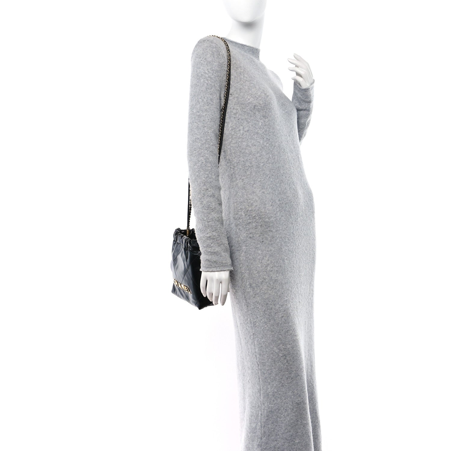 Shiny Calfskin Quilted Pearl CC Chain Mini Chanel 22 Black