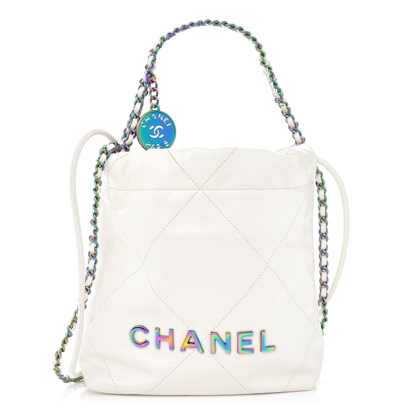 Chanel/ Bags/ Shoulder Bags /Chanel Shiny Calfskin Quilted Rainbow Mini Chanel 22 White