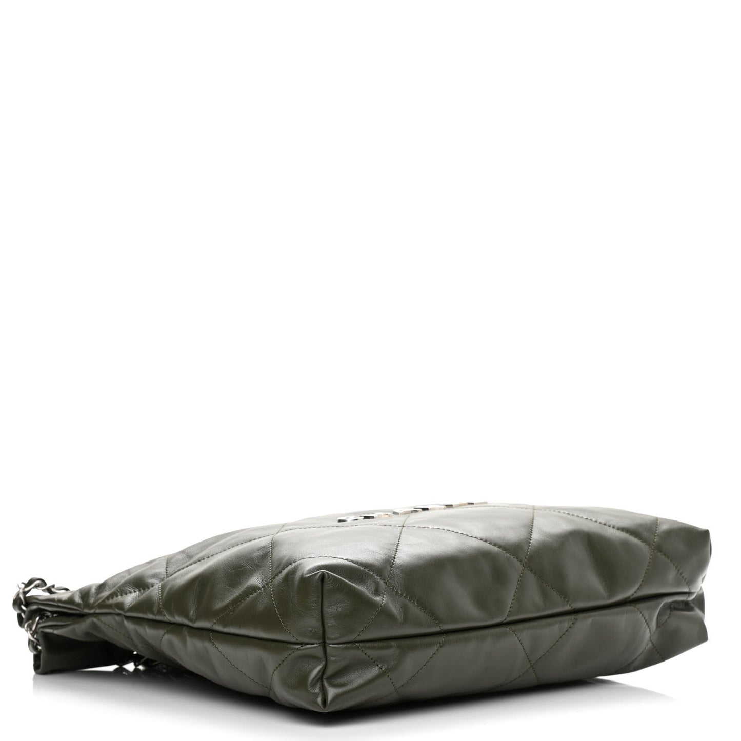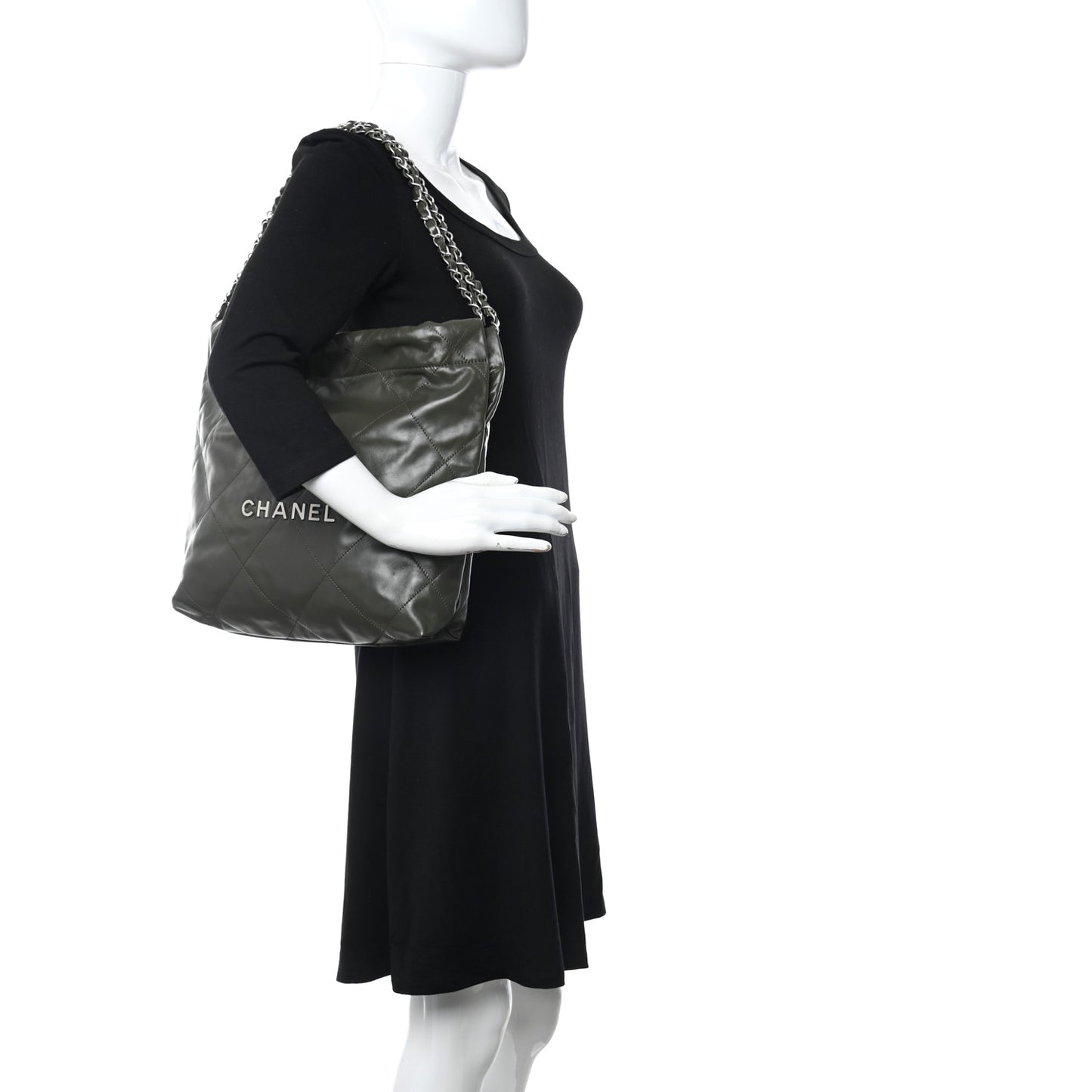 Shiny Calfskin Quilted Small Chanel 22 Khaki
