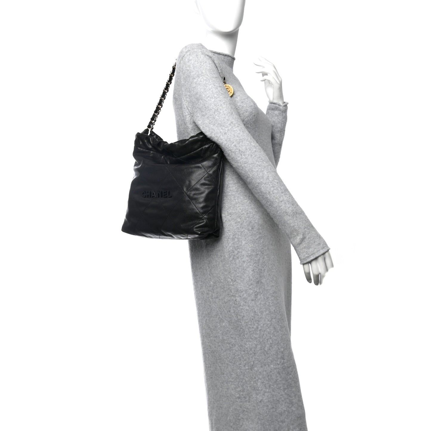 Shiny Caviar Quilted Monochrome Small Chanel 22 Black