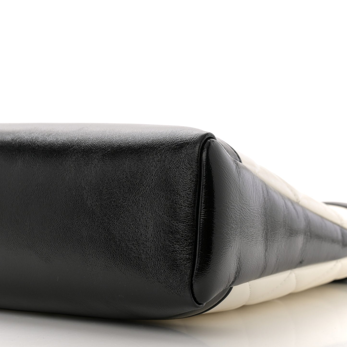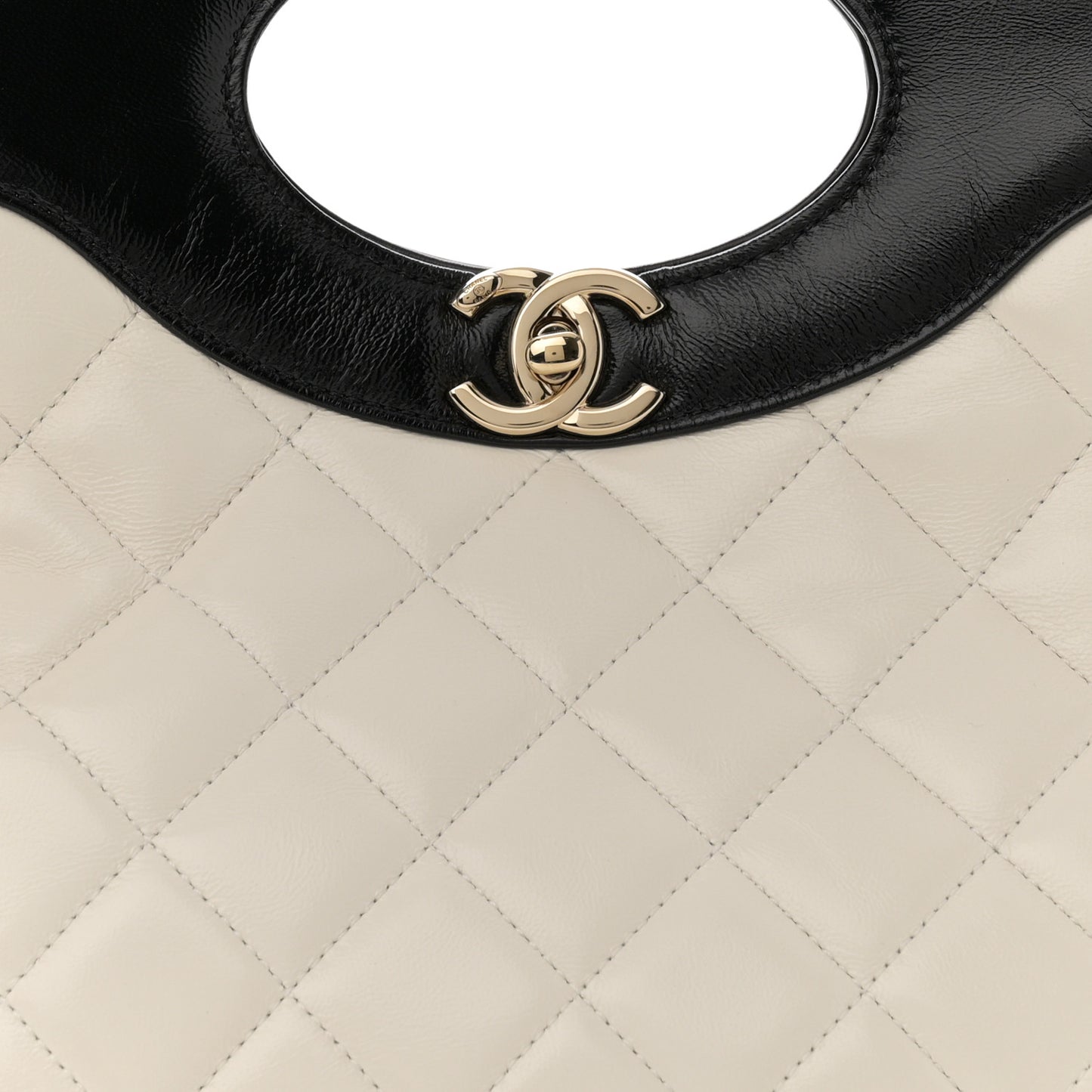 Shiny Crumpled Calfskin Quilted Small 31 Shopping Bag White Black