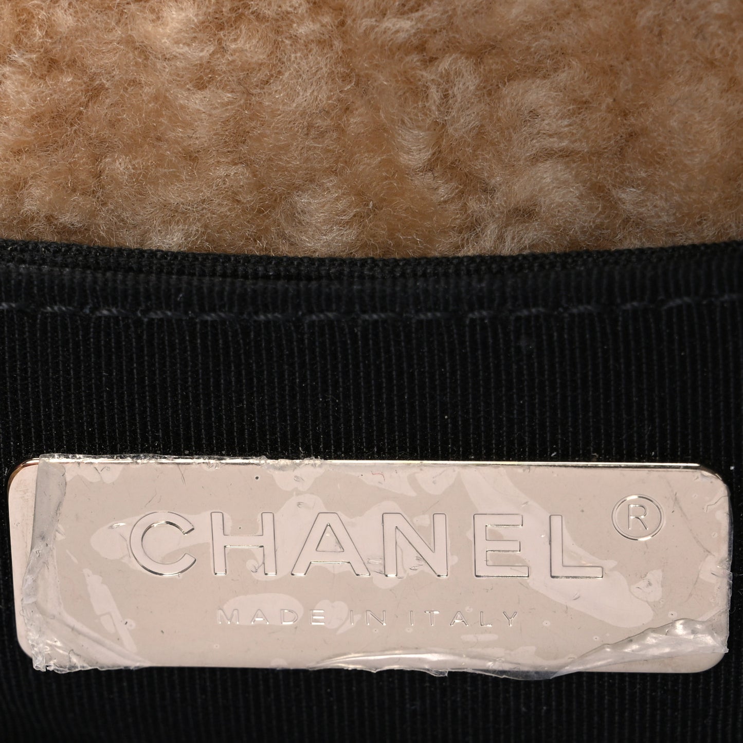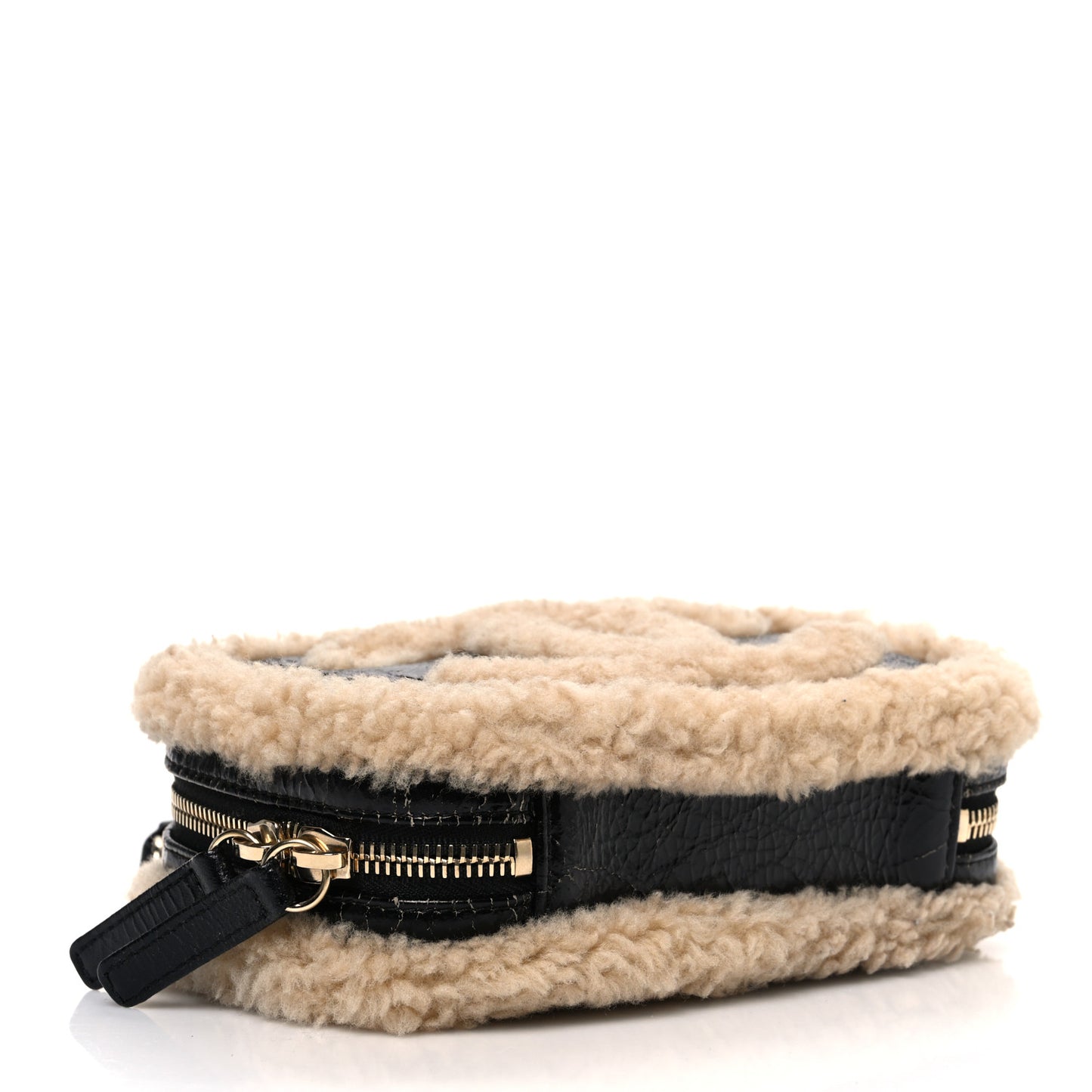 Chanel/ Bags/ Shoulder Bags /Chanel Shiny Crumpled Sheepskin Shearling Waist Bag Black Beige