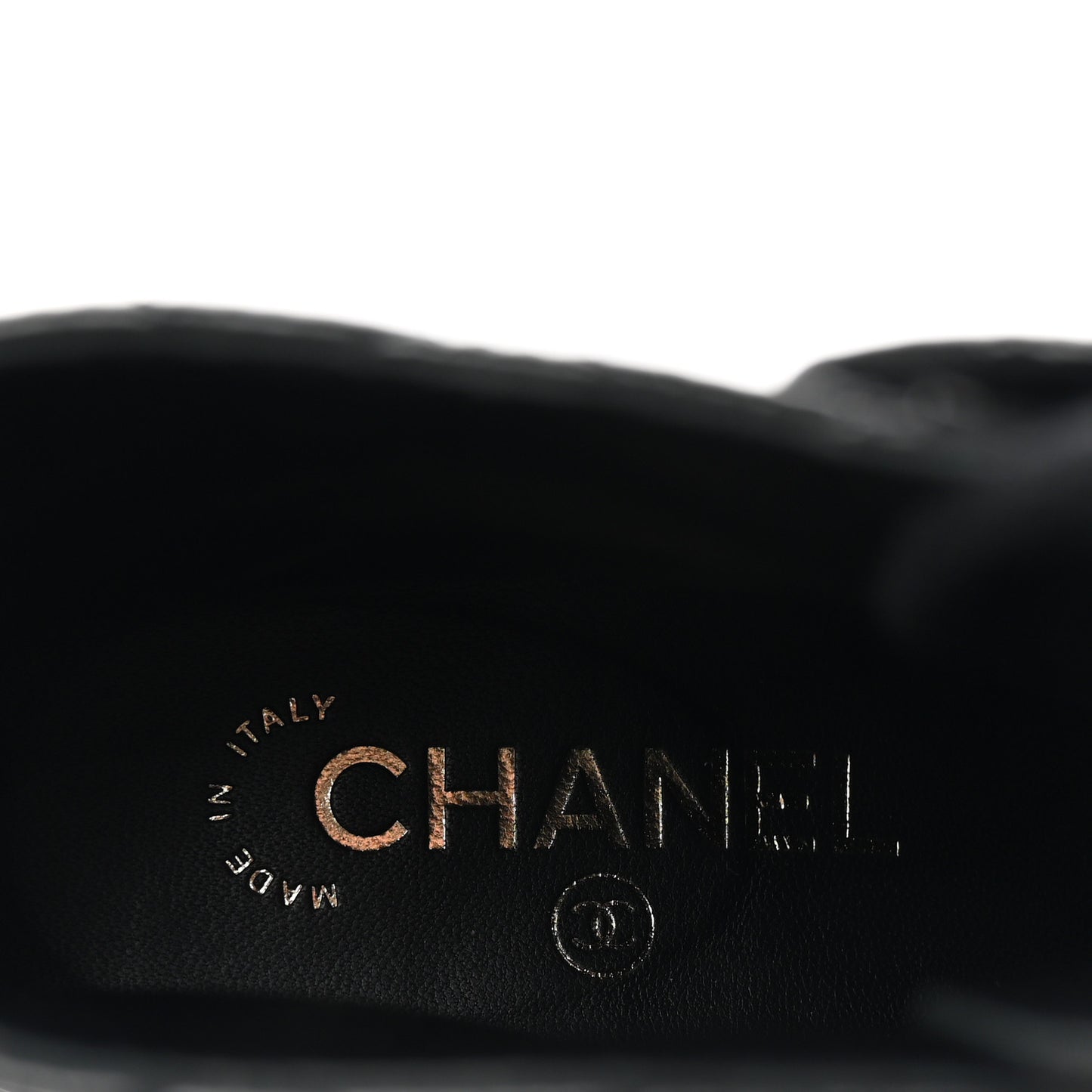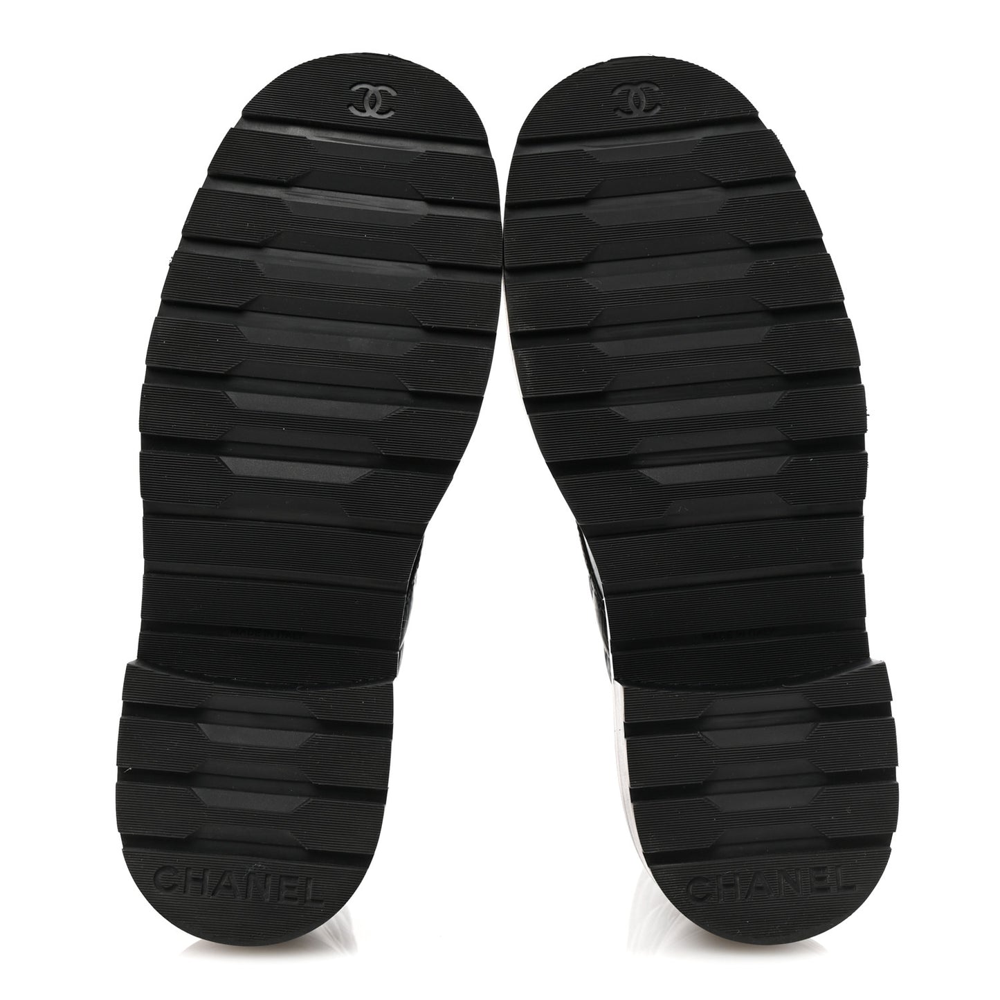 Chanel/ Accessories/ Shoes /Chanel Shiny Goatskin Calfskin Quilted Lace Up Combat Boots 36.5 Black