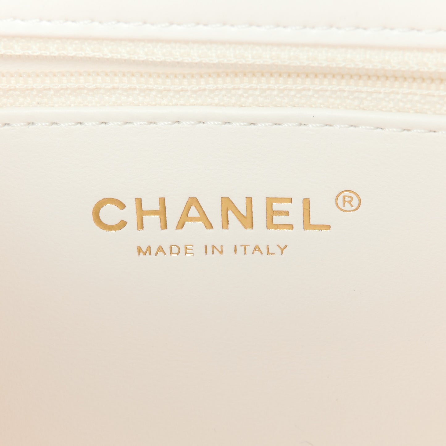 This is an authentic CHANEL Shiny Lambskin Quilted Coco Trip Flap Bag in White. This versatile handbag is crafted of shiny lambskin leather in white with diamond quilting. The bag features a rear patch pocket, white leather top handle, leather-threaded gold-toned chain strap, and classic CC turn lock on the front. This opens the flap to a white leather interior with a zippered pocket.Follow this item for alerts. Chanel is a registered trademark of Chanel. FASHIONPHILE is not affiliated with Chanel.