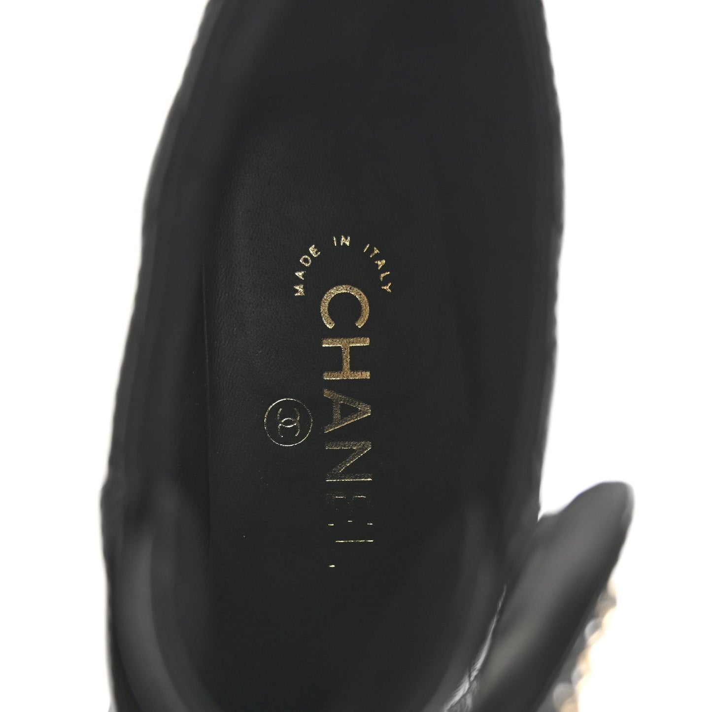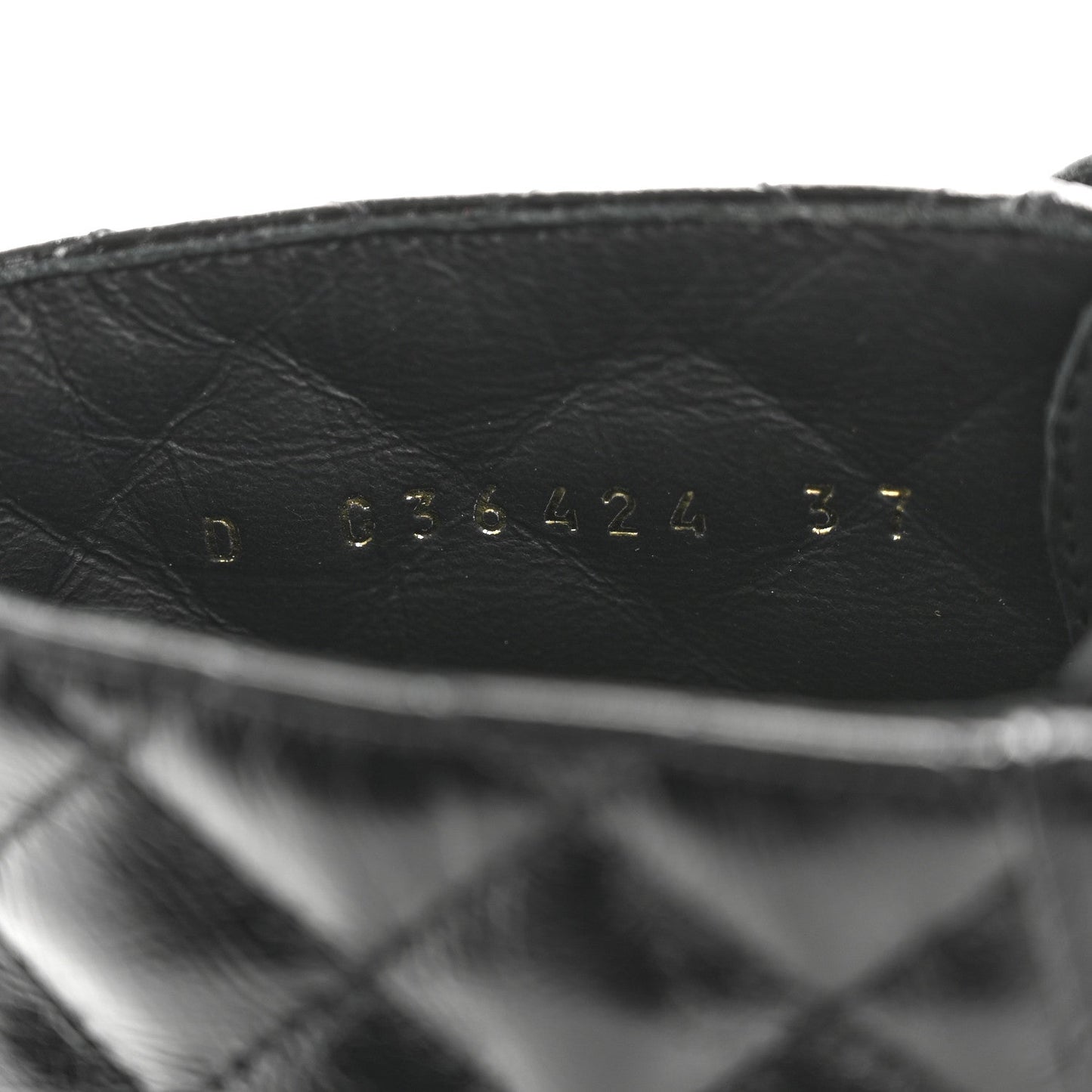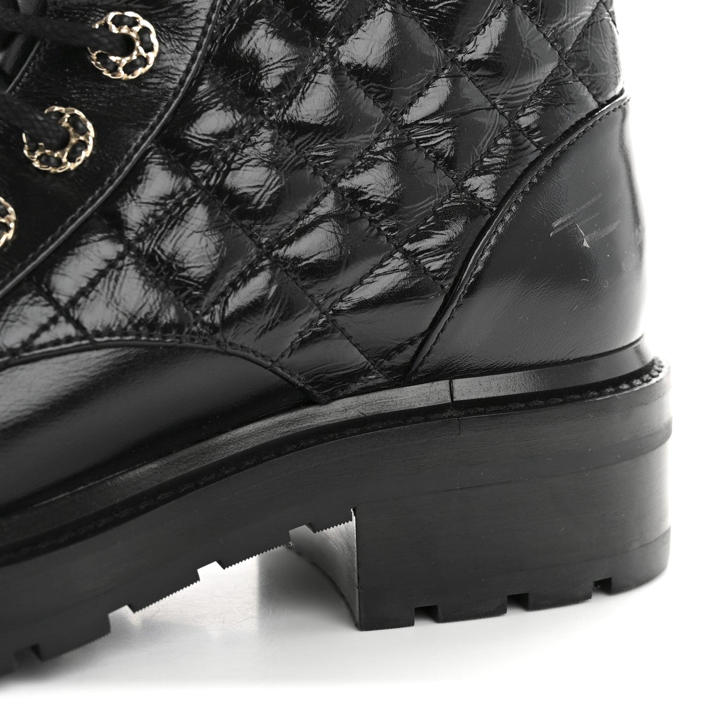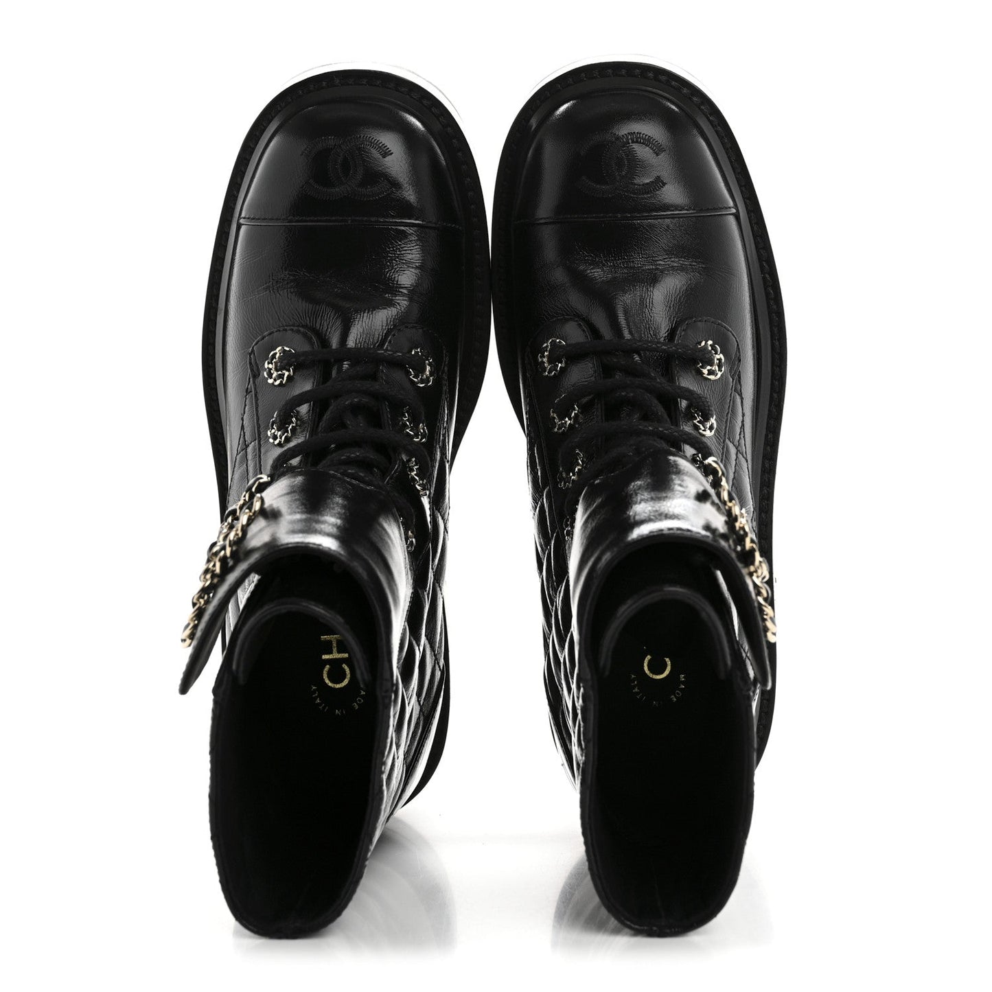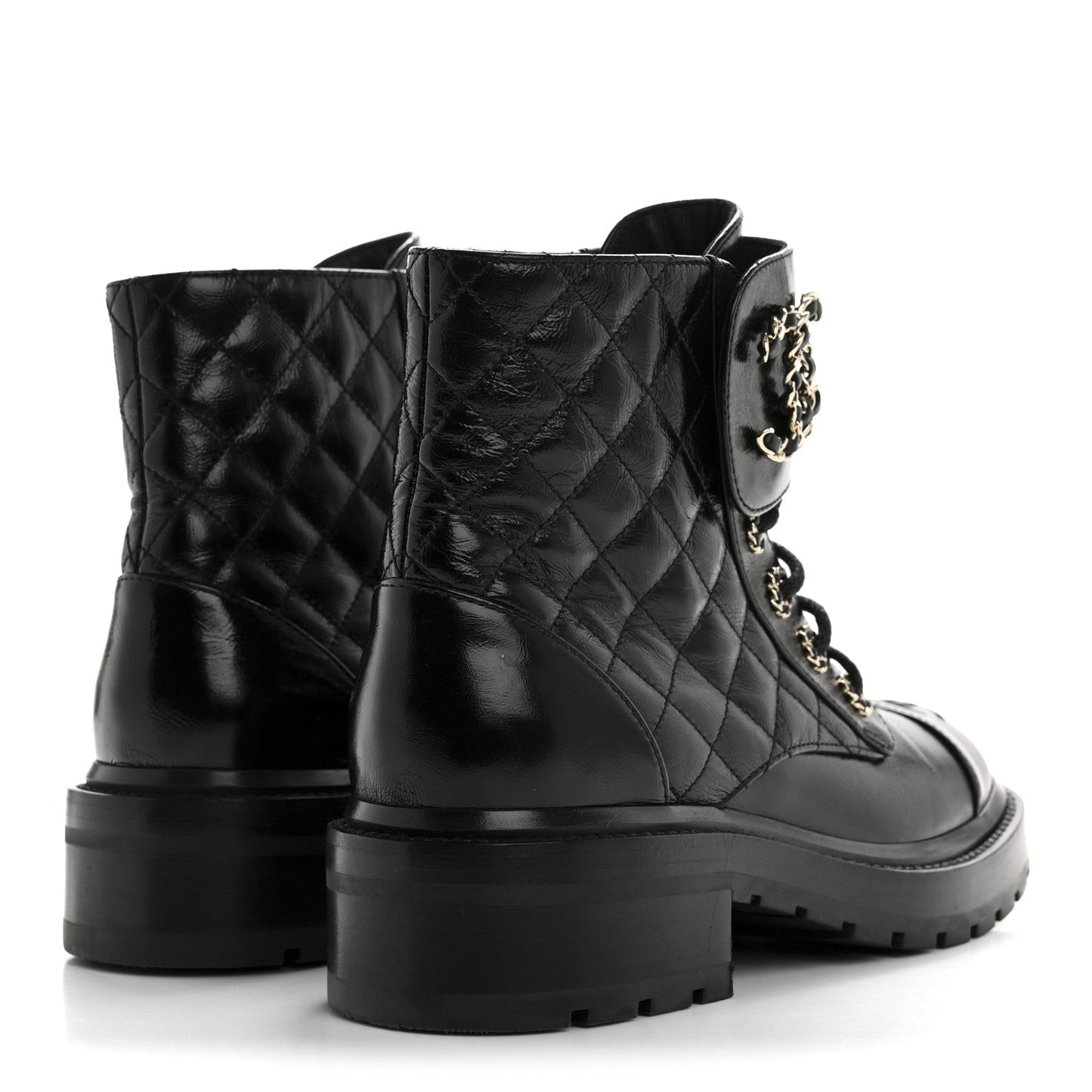 Chanel/ Accessories/ Shoes /Chanel Shiny Lambskin Quilted Lace Up Combat Boots 37 Black