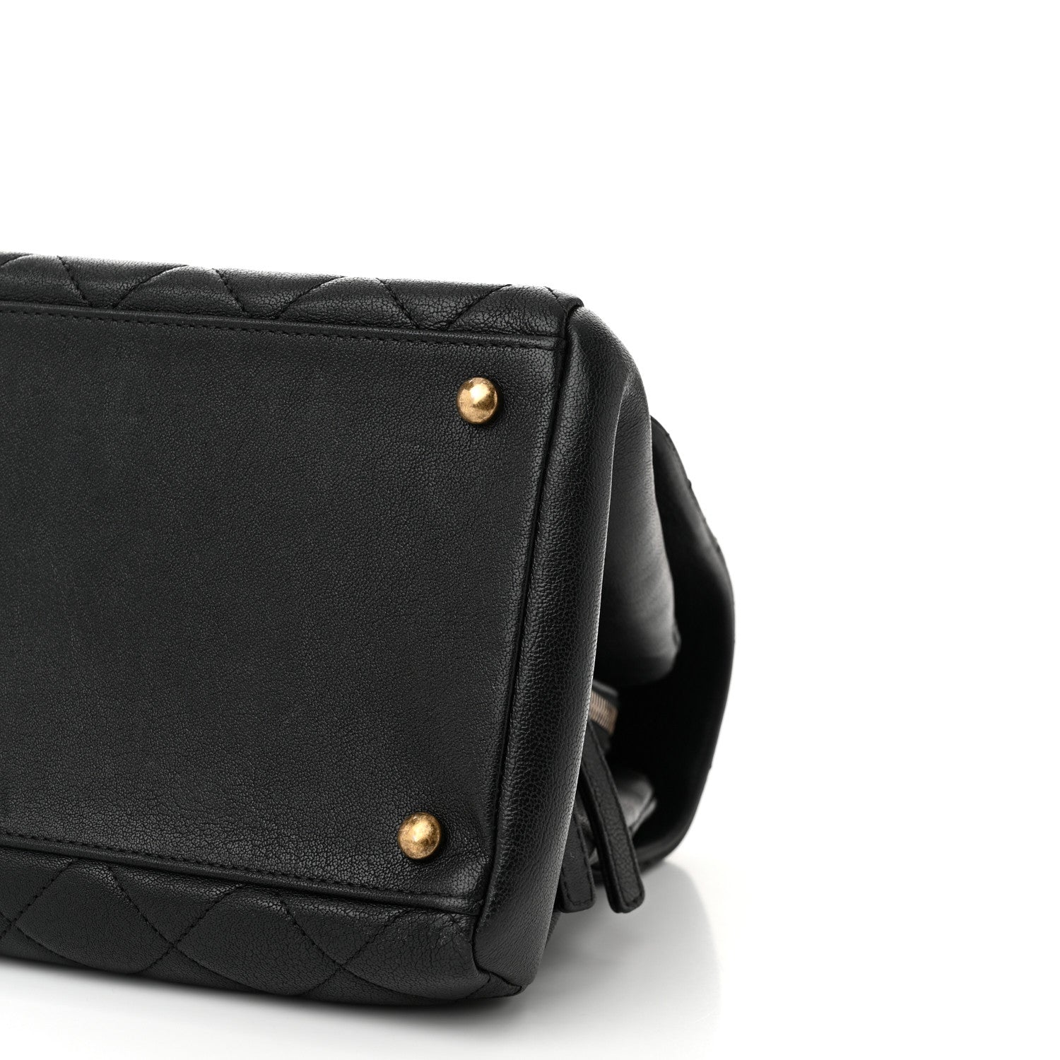 This is an authentic CHANEL Shiny Sheepskin Quilted Large Trapezio Flap in Black. This stylish shoulder bag is crafted of luxurious diamond quilted sheepskin leather in black. This shoulder bag features an aged brass link chain top handle, an optional, adjustable black leather shoulder strap, and an aged brass classic CC turn lock on the crossover flap. This opens to a partitioned burgundy fabric interior with zipper pockets.Follow this item for alerts. Chanel is a registered trademark of Chanel. FASHIONPHILE is not affiliated with Chanel.