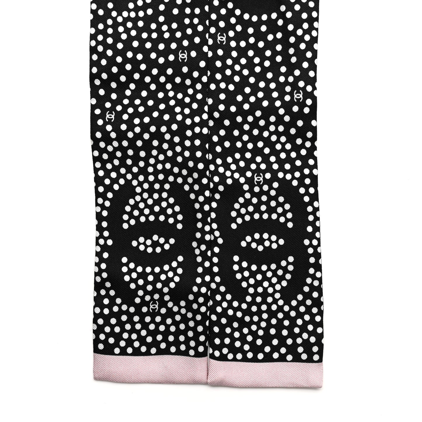 This is an authentic CHANEL Silk Pearl CC Slim Bandeau Scarf in Black and Light Pink. This scarf is crafted of 100% silk in black with white dotted CC logos and pink trim.Follow this item for alerts. Chanel is a registered trademark of Chanel. FASHIONPHILE is not affiliated with Chanel.