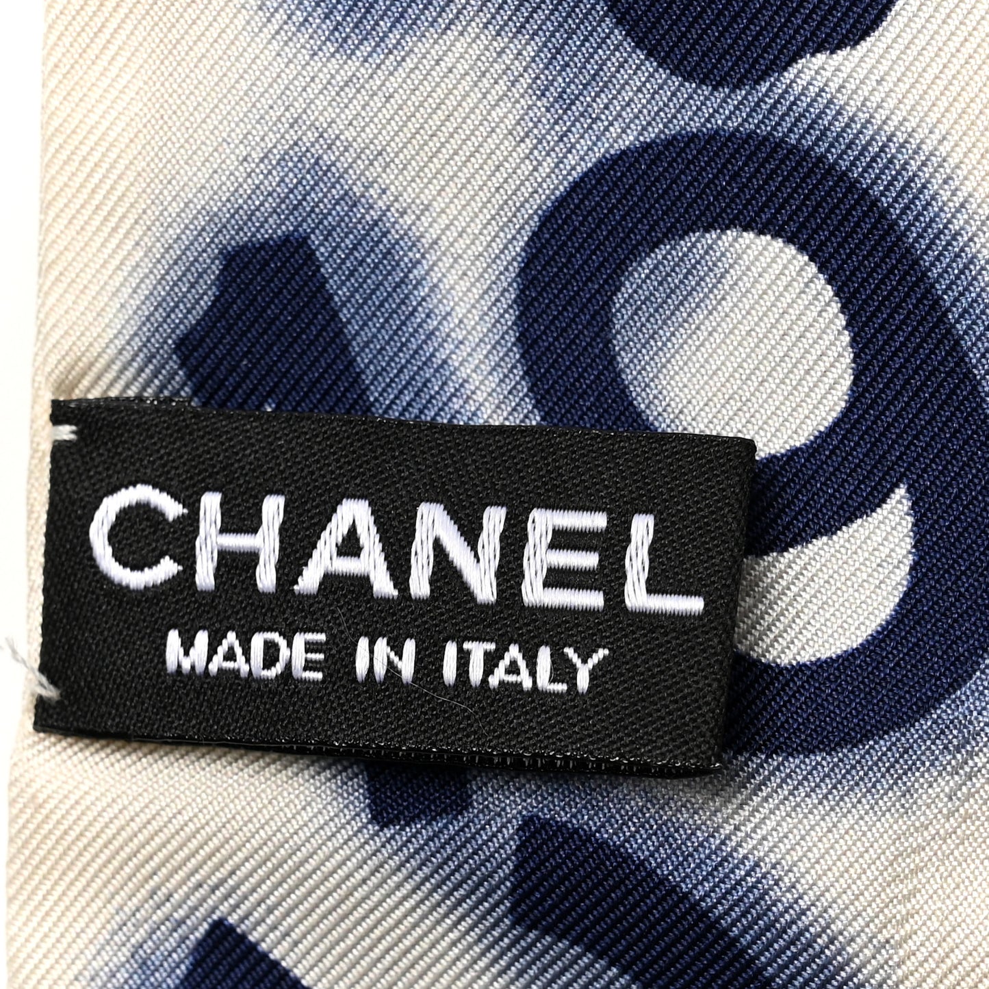 This is an authentic CHANEL Silk CC Slim Bandeau Scarf in White and Blue. This is a stunning 100% silk scarf with various Chanel symbols in blue on a white background.Follow this item for alerts. Chanel is a registered trademark of Chanel. FASHIONPHILE is not affiliated with Chanel.