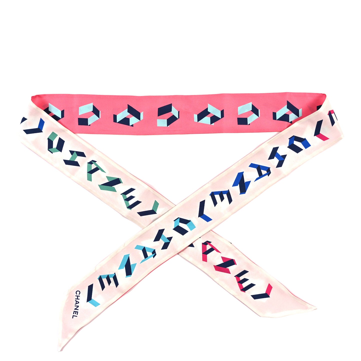 Chanel/ Accessories/ Scarves /Chanel Silk Logo Slim Bandeau Scarf Ecru Pink