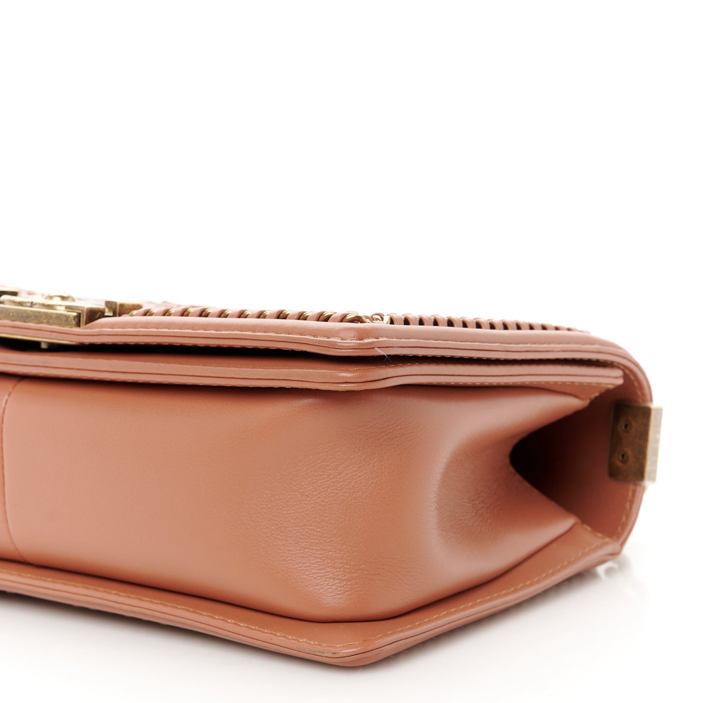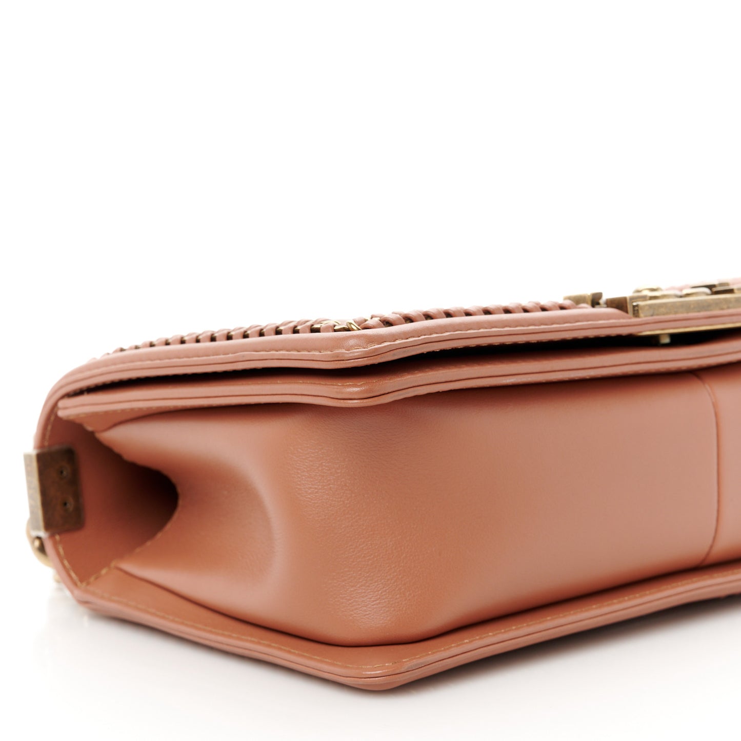 Snakeskin Calfskin Medium Chain Around Top Handle Boy Flap Camel