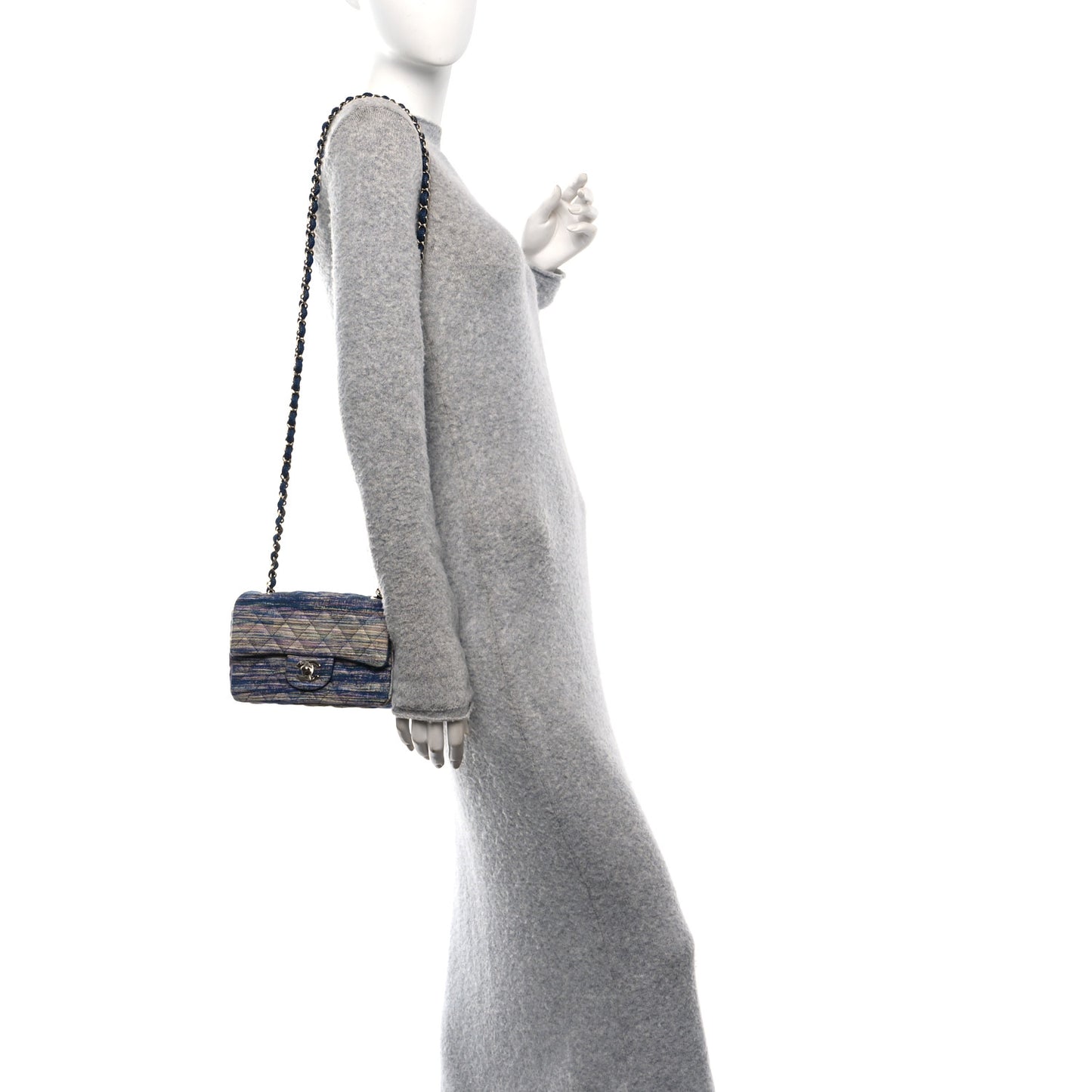 Chanel/ Bags/ Shoulder Bags /Chanel Striated Denim Quilted Classics in Fabrics Mini Rectangular Flap Navy Yellow Purple Green Multicolor