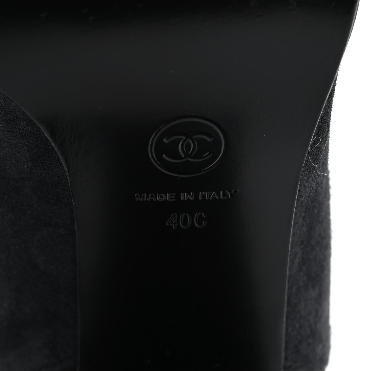 This is an authentic pair of CHANEL Suede Calfskin Lambskin Quilted Knee High Boots size 40 in Grey. These stylish boots are crafted of grey suede and feature a leather cap toe and a 1.5-inch heel.Follow this item for alerts. Chanel is a registered trademark of Chanel. FASHIONPHILE is not affiliated with Chanel.