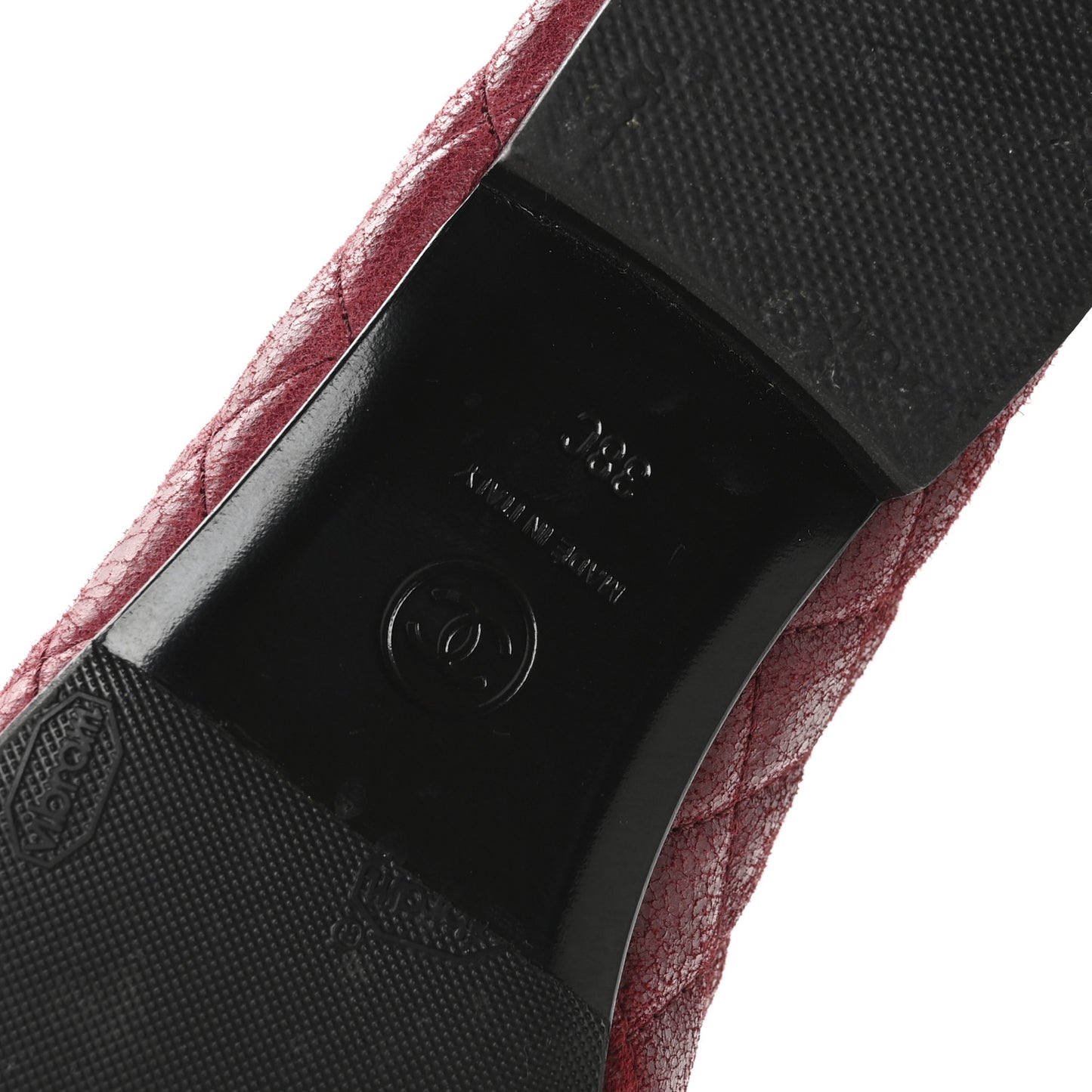 Suede Calfskin Quilted Cap Toe CC Ballerina Flats 38 Red