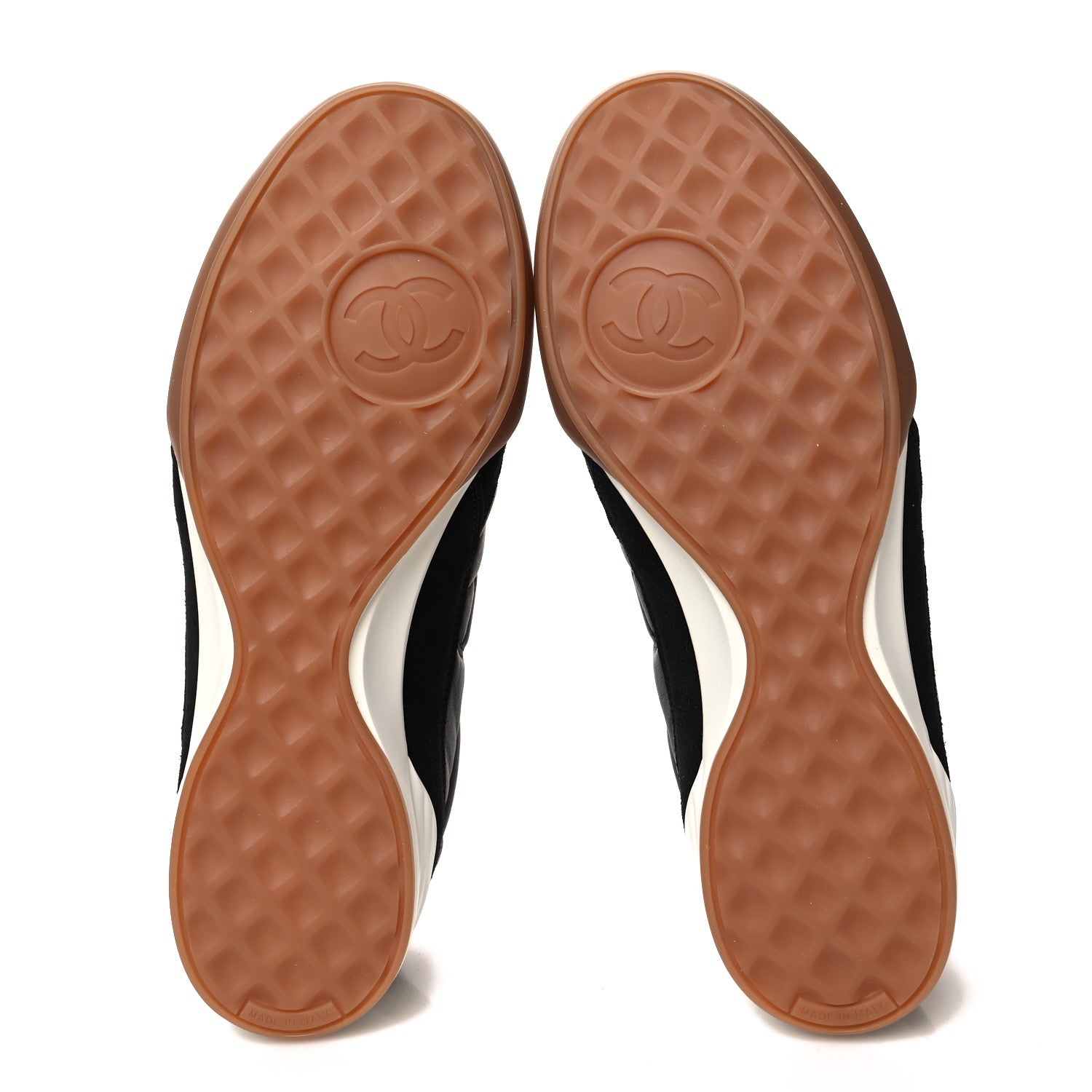 Chanel/ Accessories/ Shoes /Chanel Suede Calfskin Quilted Sneakers 38.5 Black