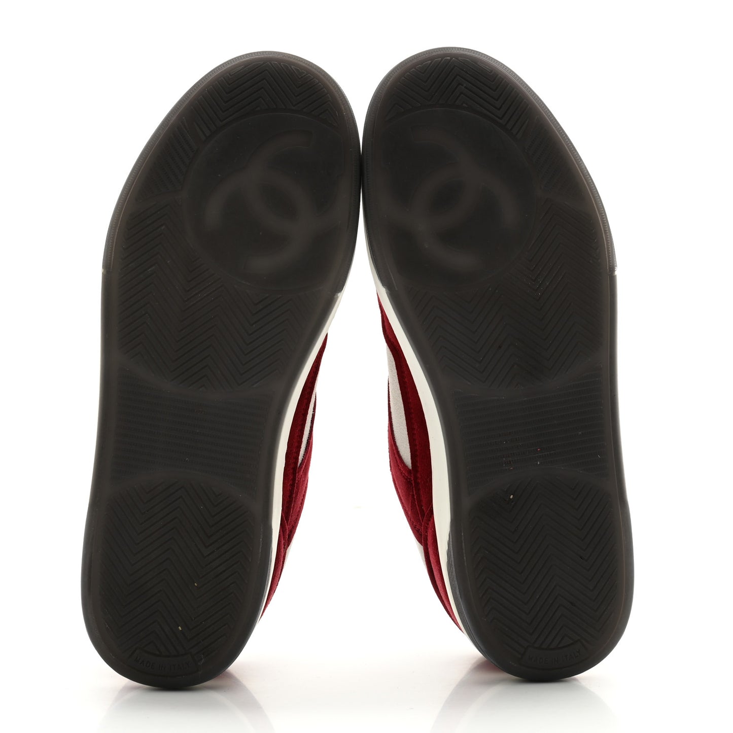 Chanel/ Accessories/ Shoes /Chanel Suede Kidskin Womens CC Sneakers 38.5 Burgundy White