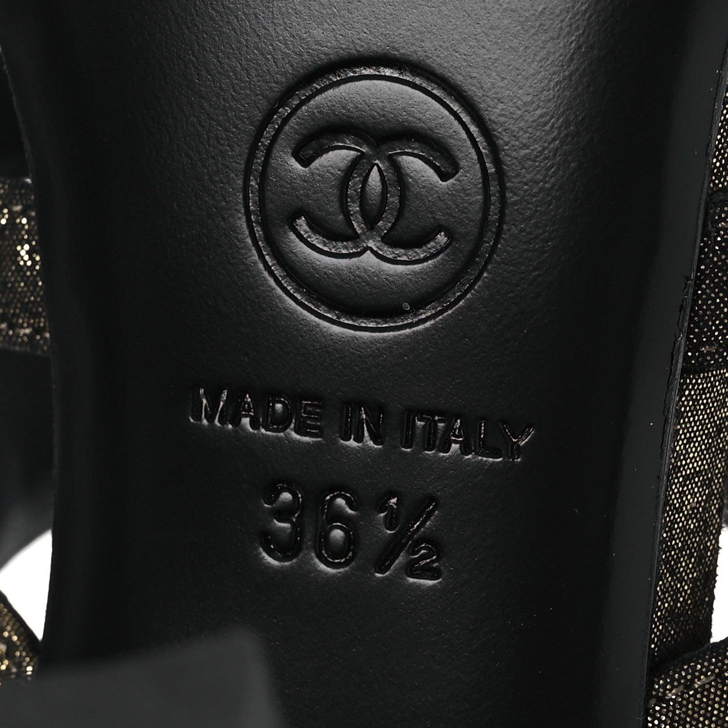 Chanel/ Accessories/ Shoes /Chanel Suede Laminated Lambskin Gladiator Chain Sandals 36.5 Dark Gold