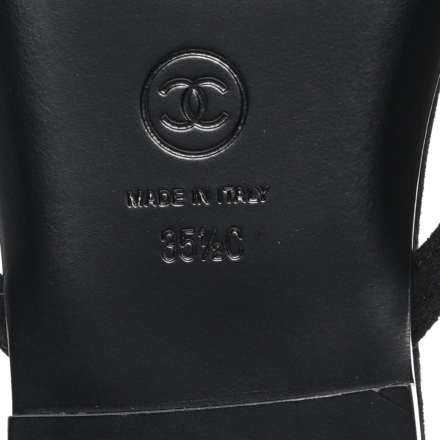 This is an authentic pair of CHANEL Suede Kidskin Strass CC Thong Sandals size 35.5 in Black. These ultra-chic sandals are crafted of black suede leather and the thong straps are adorned with crystalsFollow this item for alerts. Chanel is a registered trademark of Chanel. FASHIONPHILE is not affiliated with Chanel.